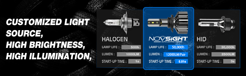 ?【Automotive-specific chipsets】NOVSIGHT 9005 9006 led chipsets designed only for automotive use, ensures the real 50,000 hours lifespan, because vehicles provide a harsh and demanding operating environment.