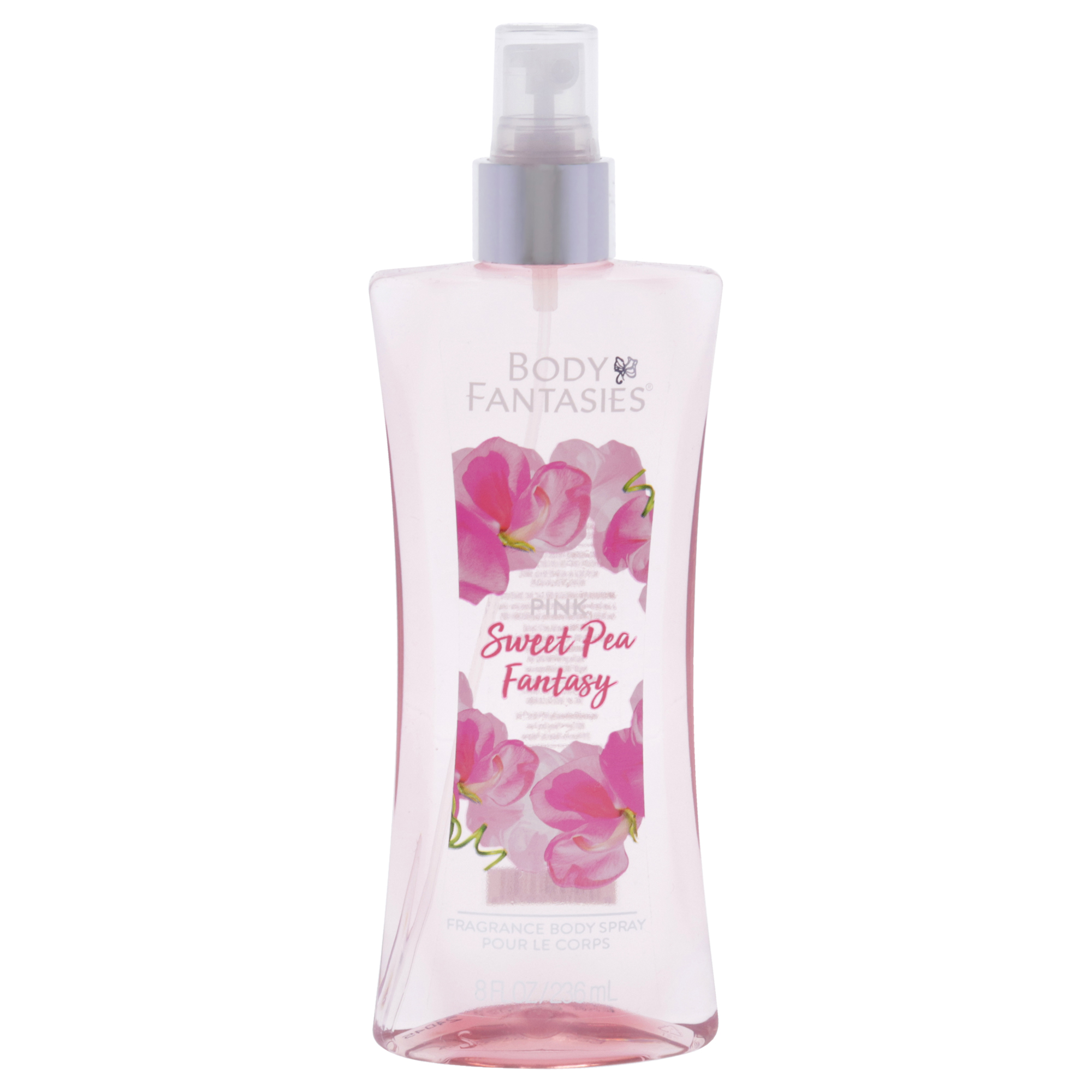 "Body Fantasies Pink Sweet Pea Fantasy Body Spray is a lighthearted, sweet scent of innocence and wonder. It a blissful mix of sparkling fruits which are masterly mingled to create a beautiful, feminine fragrance."