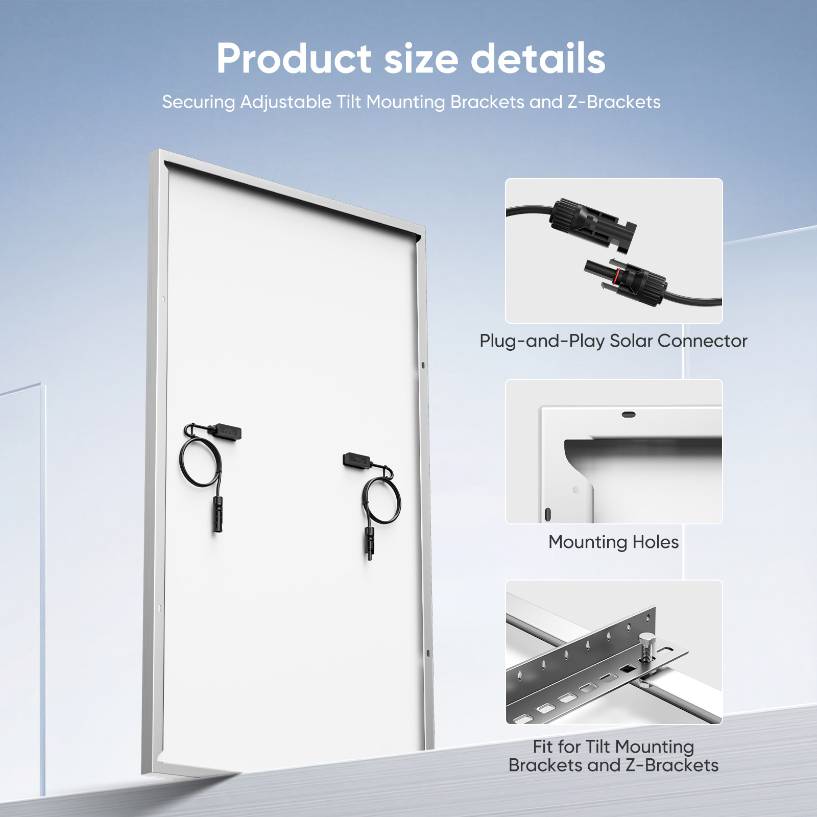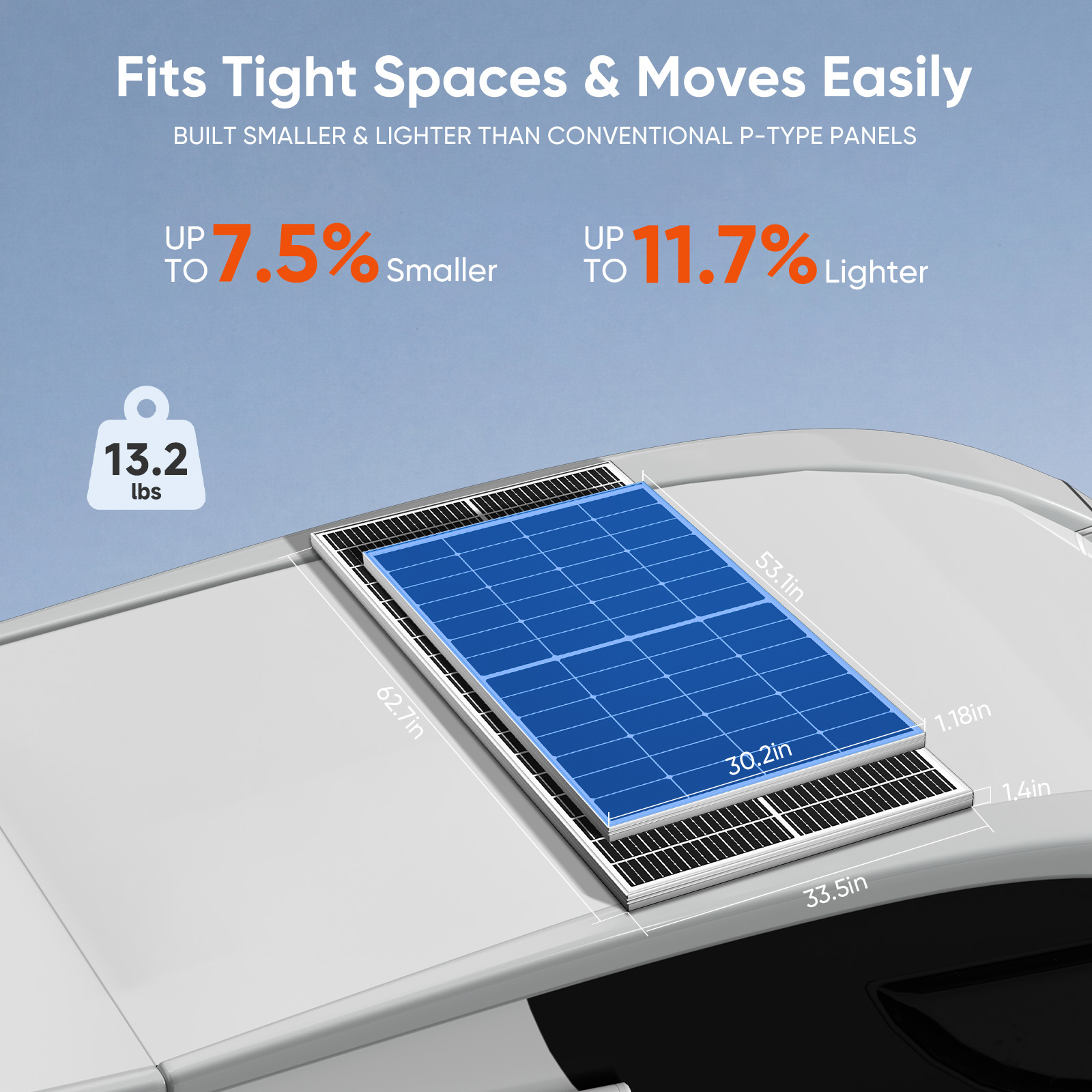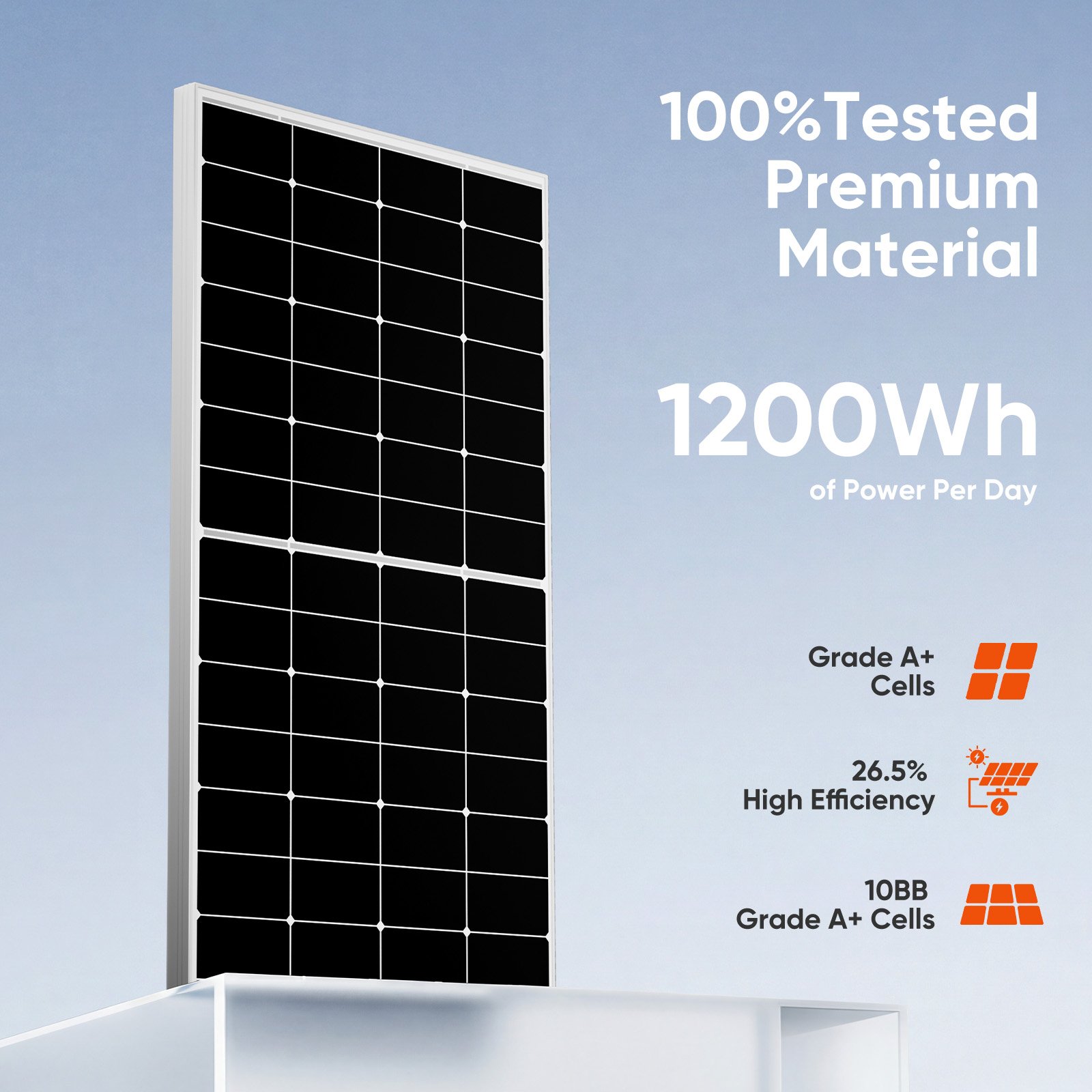 Solar panel kit is an eco-friendly power source designed for boat, home off-grid charging, camping and outdoor activities. Made from Class A monocrystalline cells, it absorbs sunlight efficiently, turning it into your portable power source. You can use this kit as well as other battery types to charge 12V deep cycle batteries. If you need a different wattage solar panel, maximum power, accessories, or kits, check out the other solar panel products in our store now.