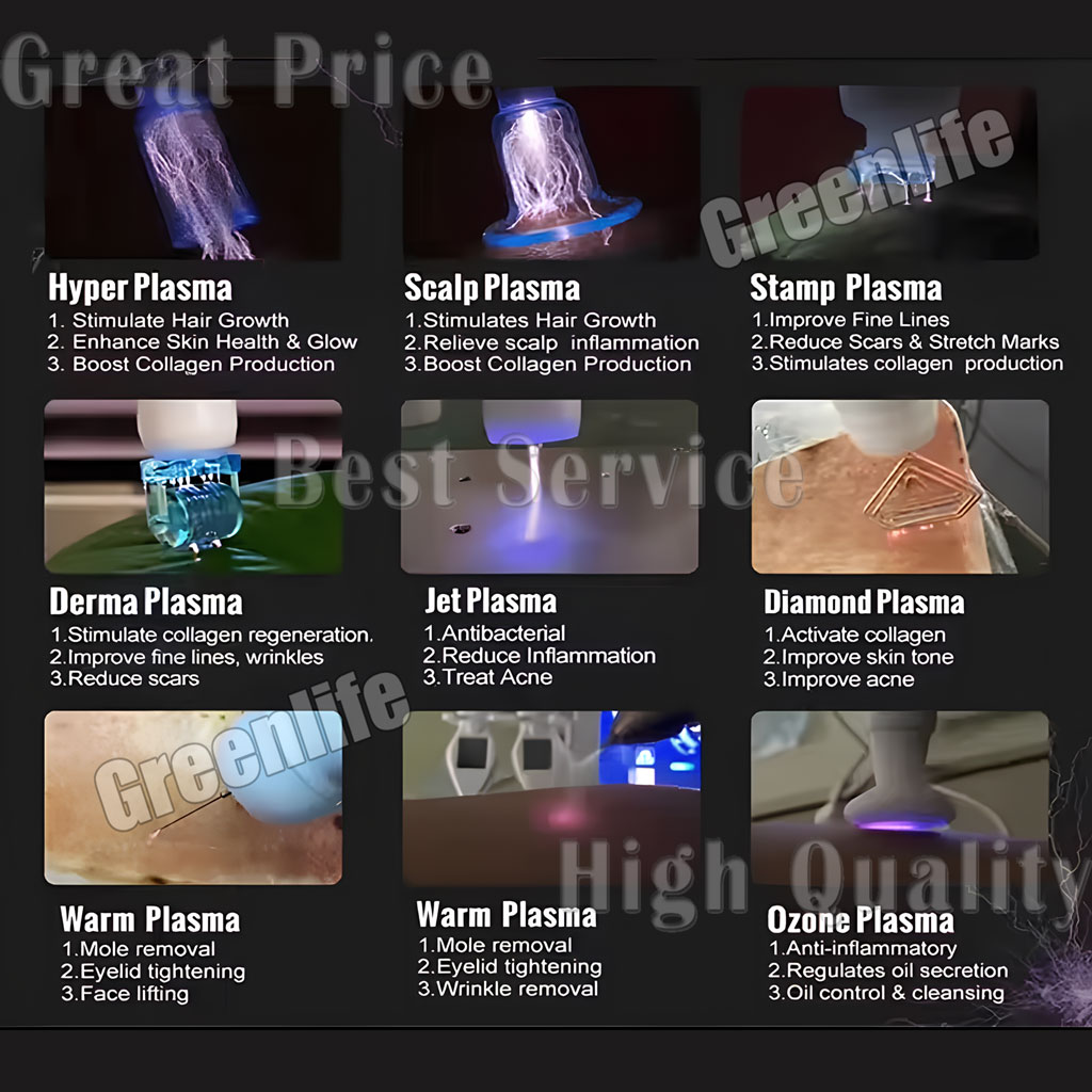 Plasma consists of ions and electronics. It is an electrical ionized gas with electrical energy. Based on the principle of plasma conduction, it can open the mucosal molecules of skin cells and change the position of the ionic. Then they can pass the cell membrane. When the cell membrane voltage increases, it will help the cell to correct the cation dislocation on the inside and outside of the cell membrane, and restore the membrane potential to a balanced state. Then the cell will return to normal operation, so that the skin can regenerate and enhance the skin tissue resistance. It is effective to improve skin surface tissue,cure acne and scars without destroying cells, and works on acne removal, wrinkles removal, collagen cell regeneration, increasing skin elasticity, whitening and brightening skin.