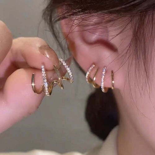 Eye Catching Gold Hoop Earrings featuring Zircon Stones for Autumn Wear