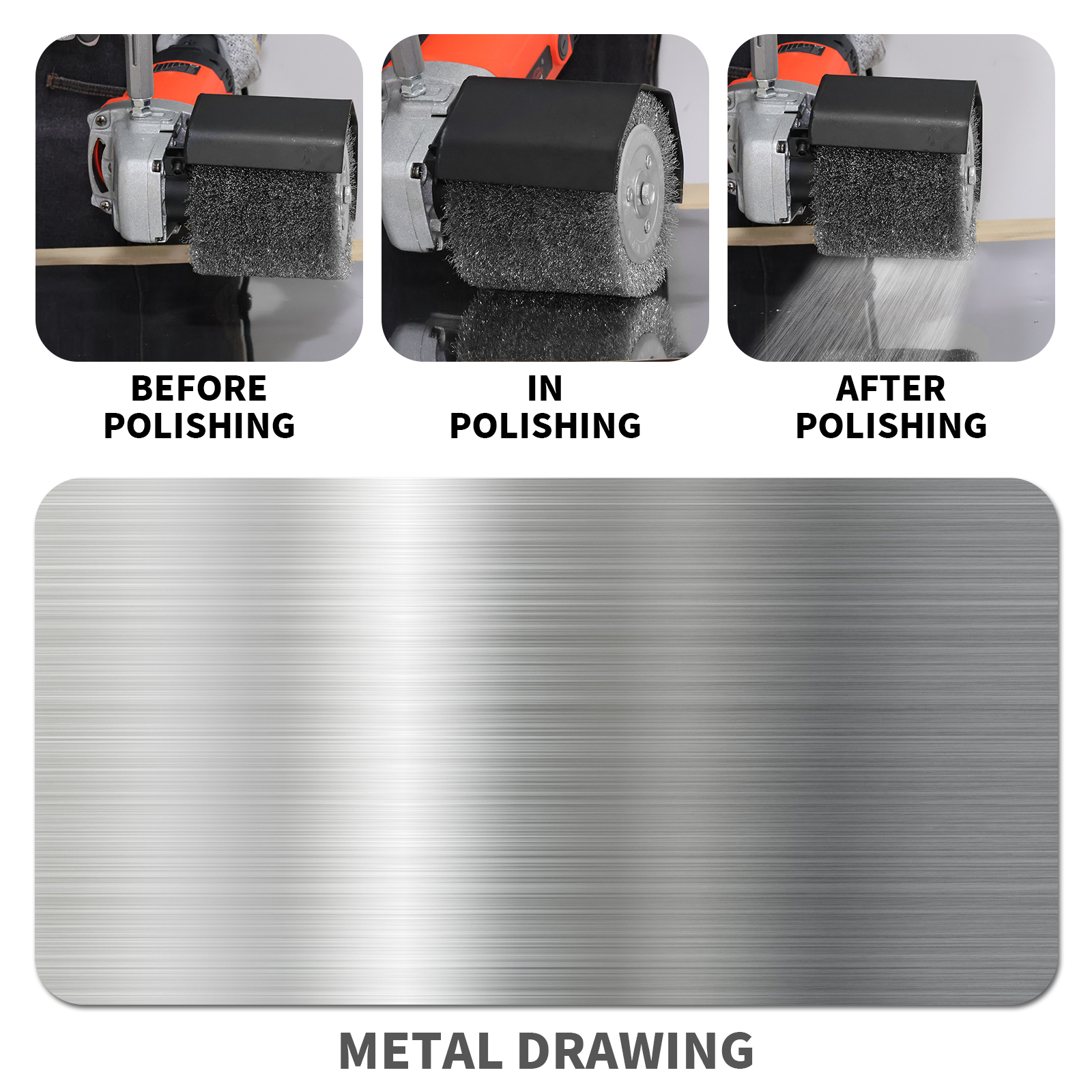 The special needle is particularly good for stainless steel, aluminum, iron and other metal structure products polishing and wire drawing effect.