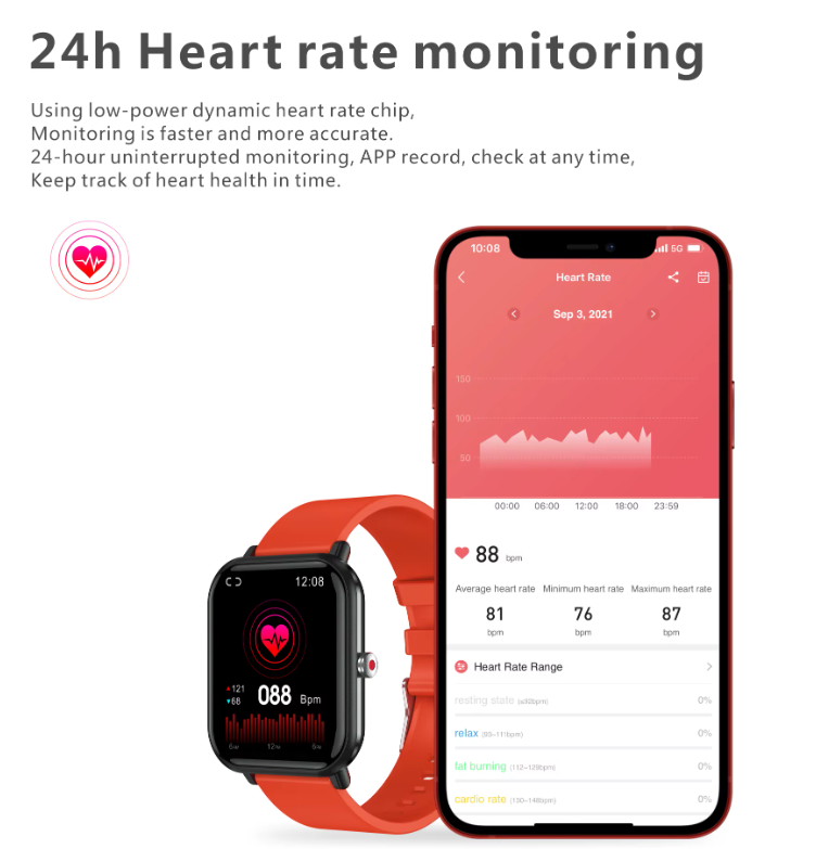 Screen: 1.7inch TFT high-definition, 240*280pixel, full screen touch