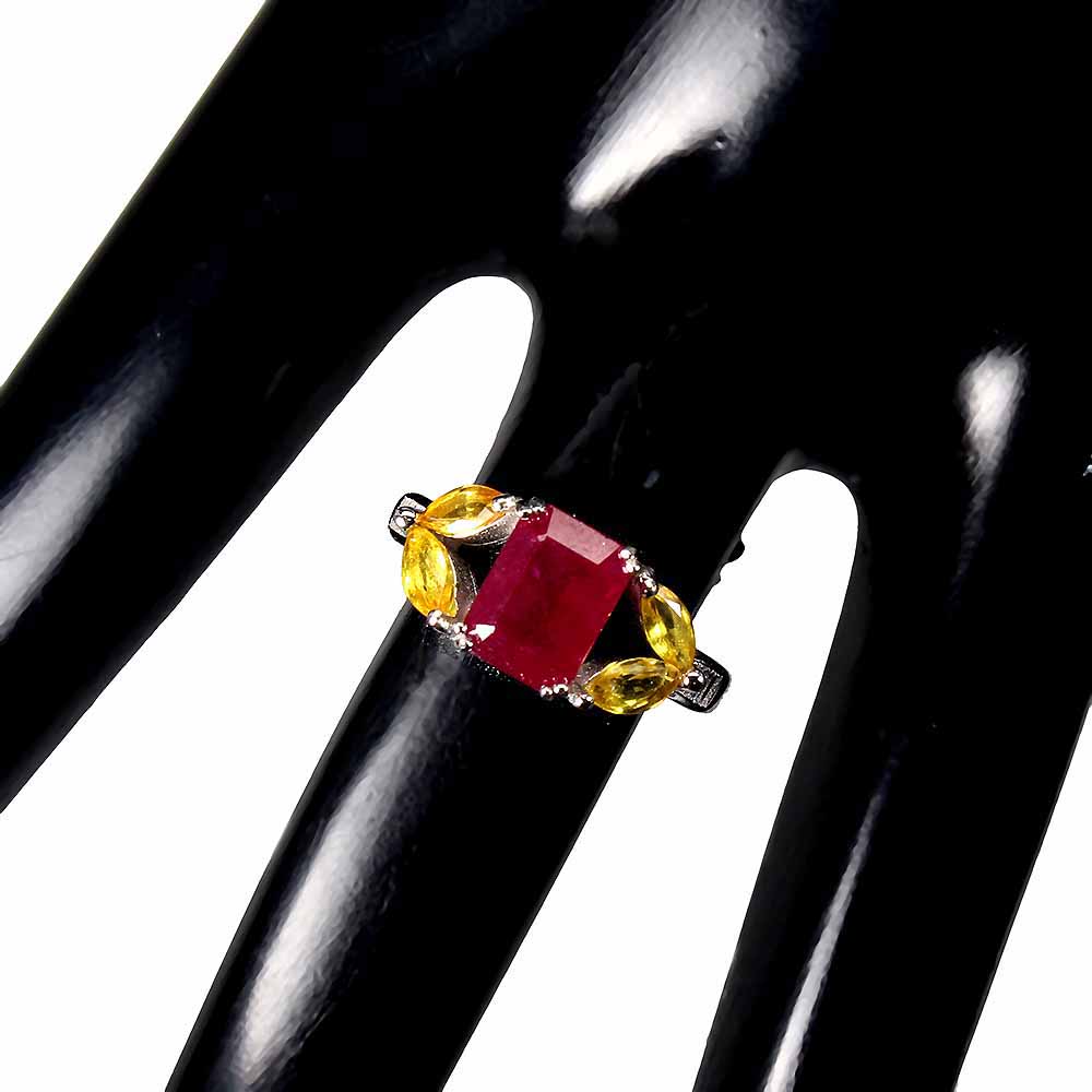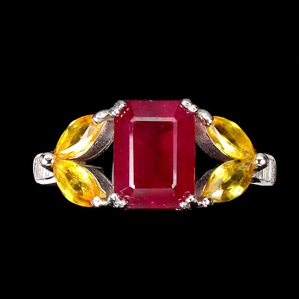 Octagon Red Ruby 8x6mm Yellow Sapphire Cz 925 Sterling Silver Ring Size 8