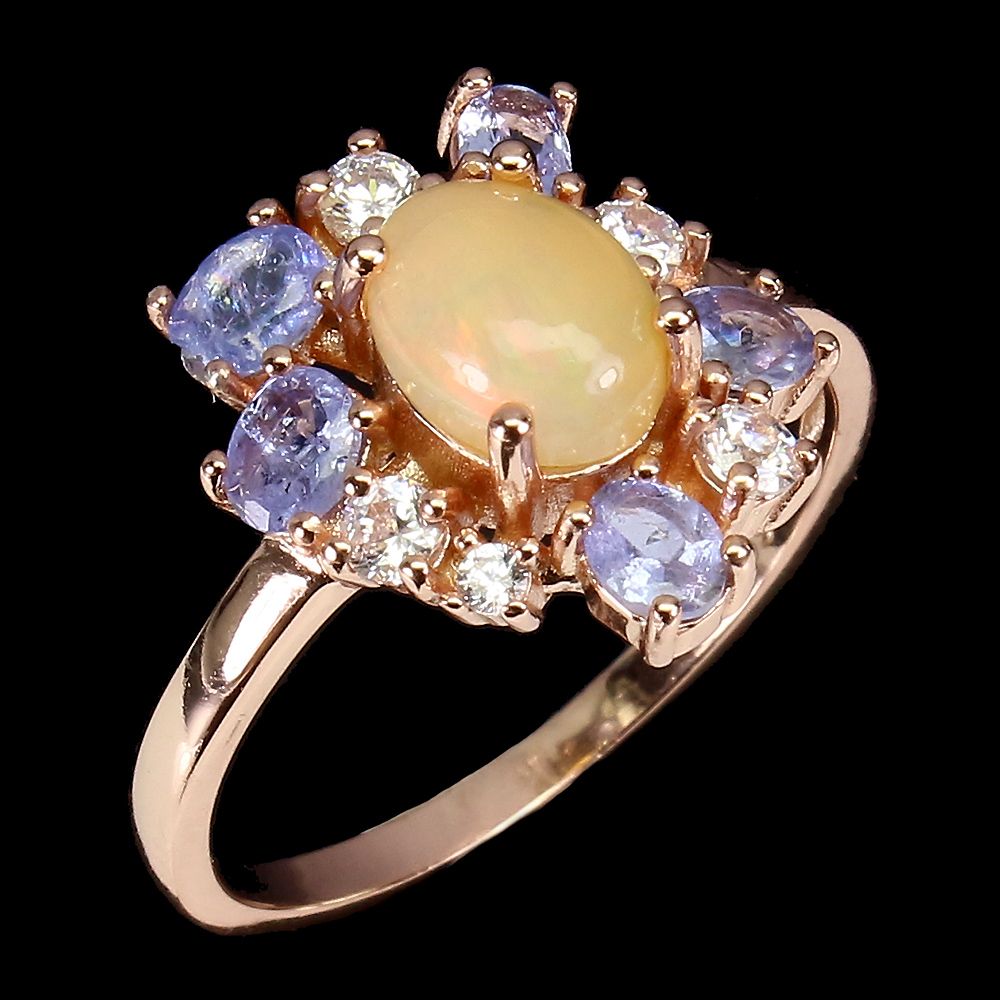 Unheated Oval Fire Opal 8x6mm Tanzanite Cz 925 Sterling Silver Ring Size 9