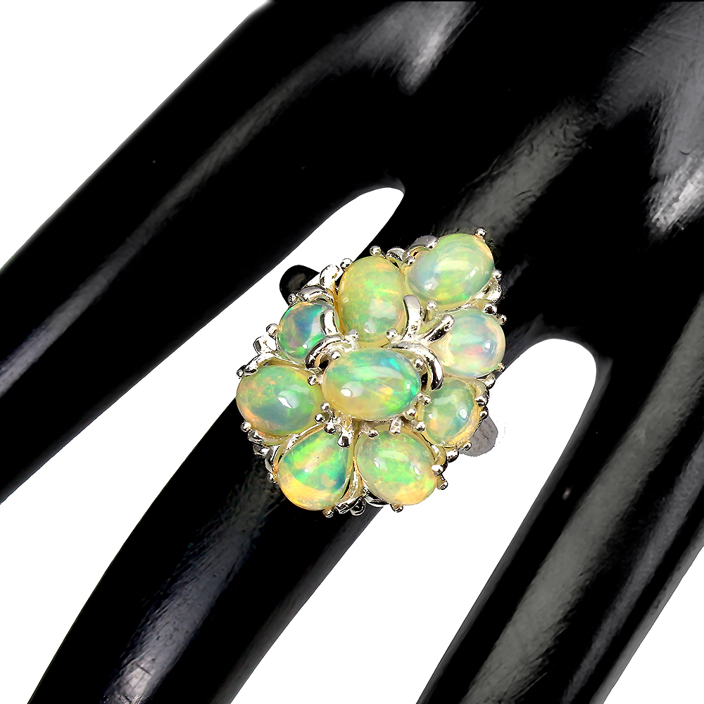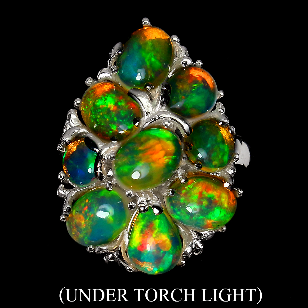 Unheated Oval Fire Opal Rainbow Full Flash 7x5mm 925 Sterling Silver Ring Size 8