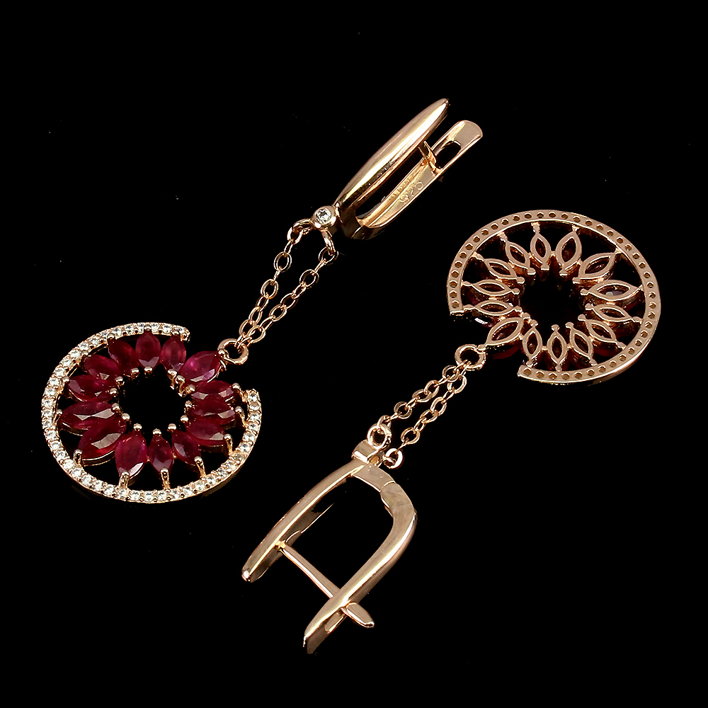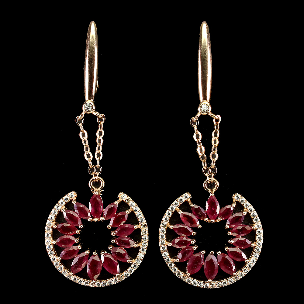 Marquise Red Ruby 5x2.5mm Cz 14K Rose Gold Plate 925 Sterling Silver Earrings