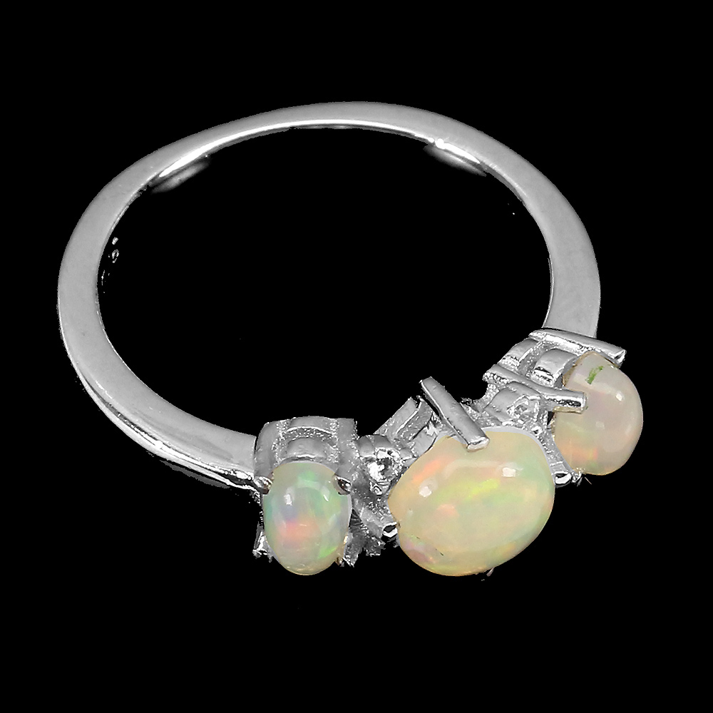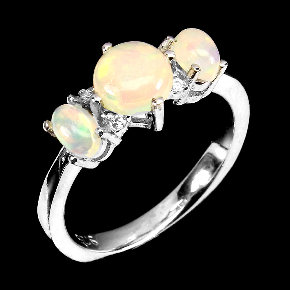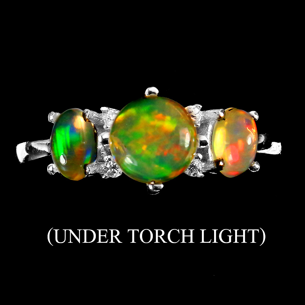 Unheated Round Fire Opal Rainbow Full Flash 6mm Cz 925 Sterling Silver Ring 7