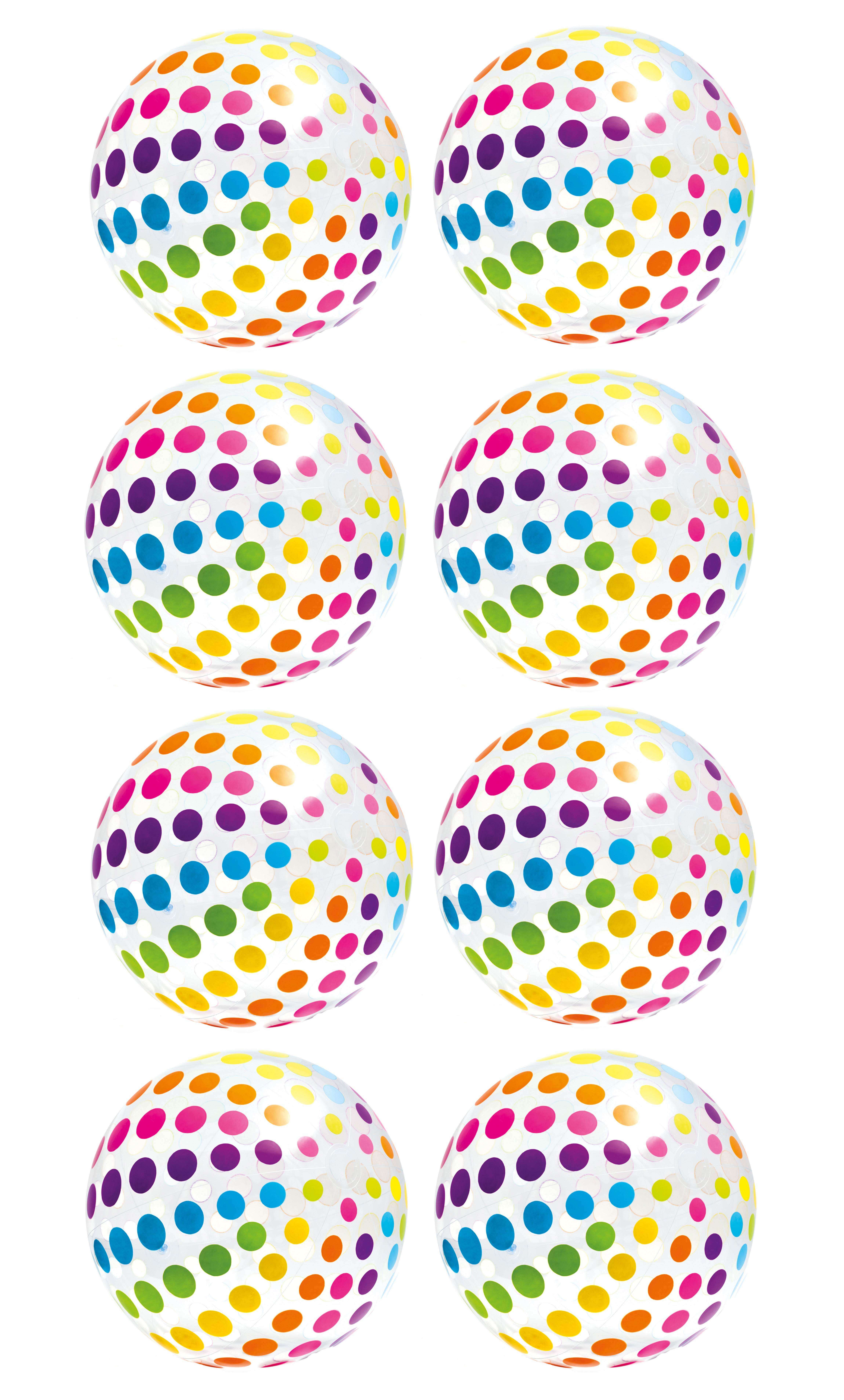 Bring big fun to the beach with this 8 pack of Intex Jumbo Beach Balls! This giant 42 inch beach ball features a classic transparent design with colorful panels.
