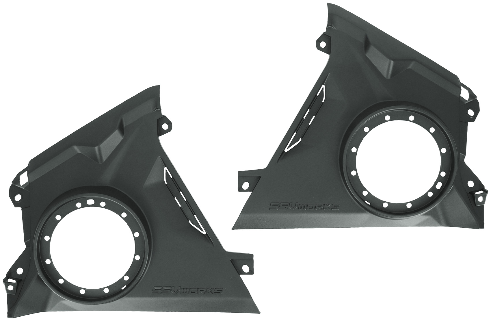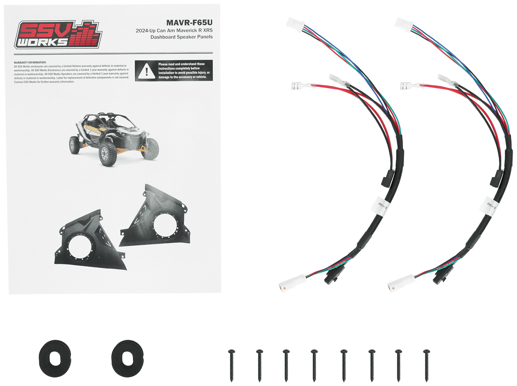 Introducing the all-new 6.5" front-speaker enclosures by SSV Works, exclusively designed for the Maverick R! These dash panels are the first and only aftermarket solution available, offering a seamless fit for Can-Am Maverick R models. With a hassle-free installation process, these speaker panels securely attach to the existing factory mounting locations, eliminating the need for drilling or modifications. The panels are compatible with 6.5" model speakers, ensuring versatility for your audio preferences.