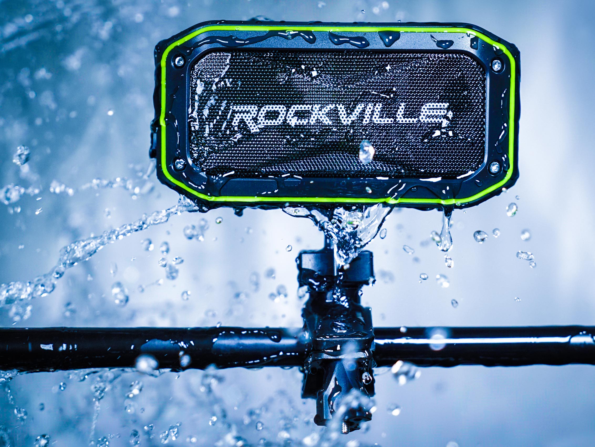The ROCK ANYWHERE is 100% waterproof. You can take it with you into the shower, or inside the pool and it will never get damaged.