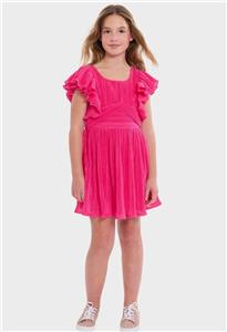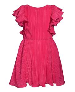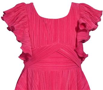 NEW Girls "FUCHSIA PINK PLEATED" Ruffle Sleeve Knit Dress Size 16