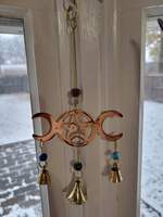Triple Moon Wind Chime Brass with colored glass Beads Approx. 9"L.
