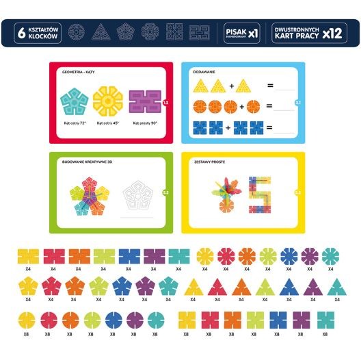 Each set contains six different shapes in seven colours that engage the child to think logically and develop manual skills.