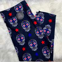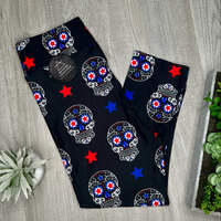 Add a touch of tradition and patriotism to your wardrobe with our Folk Art Inspired Capri Leggings. The captivating sugar skull print, embellished with stars and vibrant colors, pays homage to iconic folk art while celebrating modern Americana.