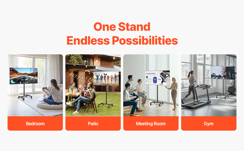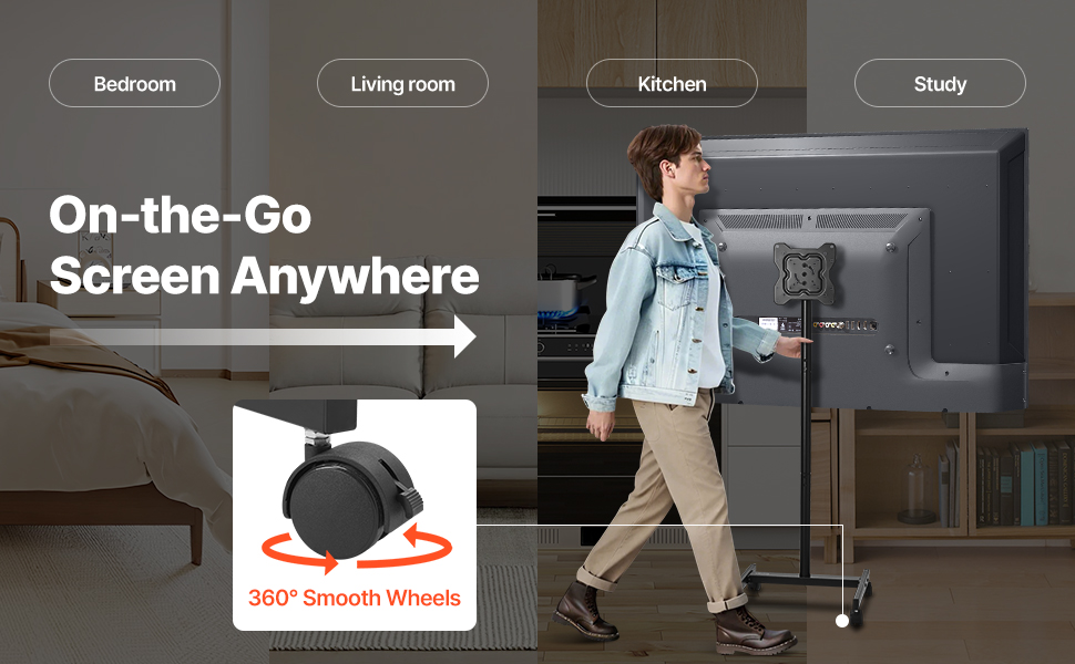 Il nostro supporto TV mobile è dotato di ruote girevoli, così puoi spostare rapidamente la TV da una stanza all'altra.