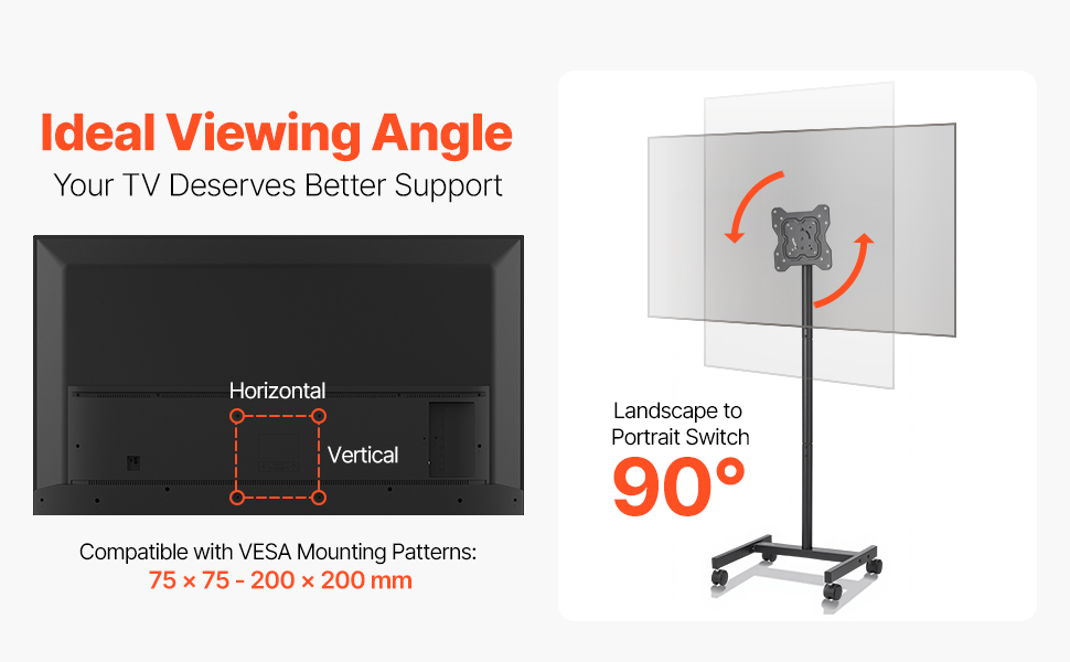 Regolazione flessibile: Questo supporto TV mobile offre opzioni di regolazione, così puoi facilmente posizionare la TV in base alla disposizione della stanza e alle esigenze di visione