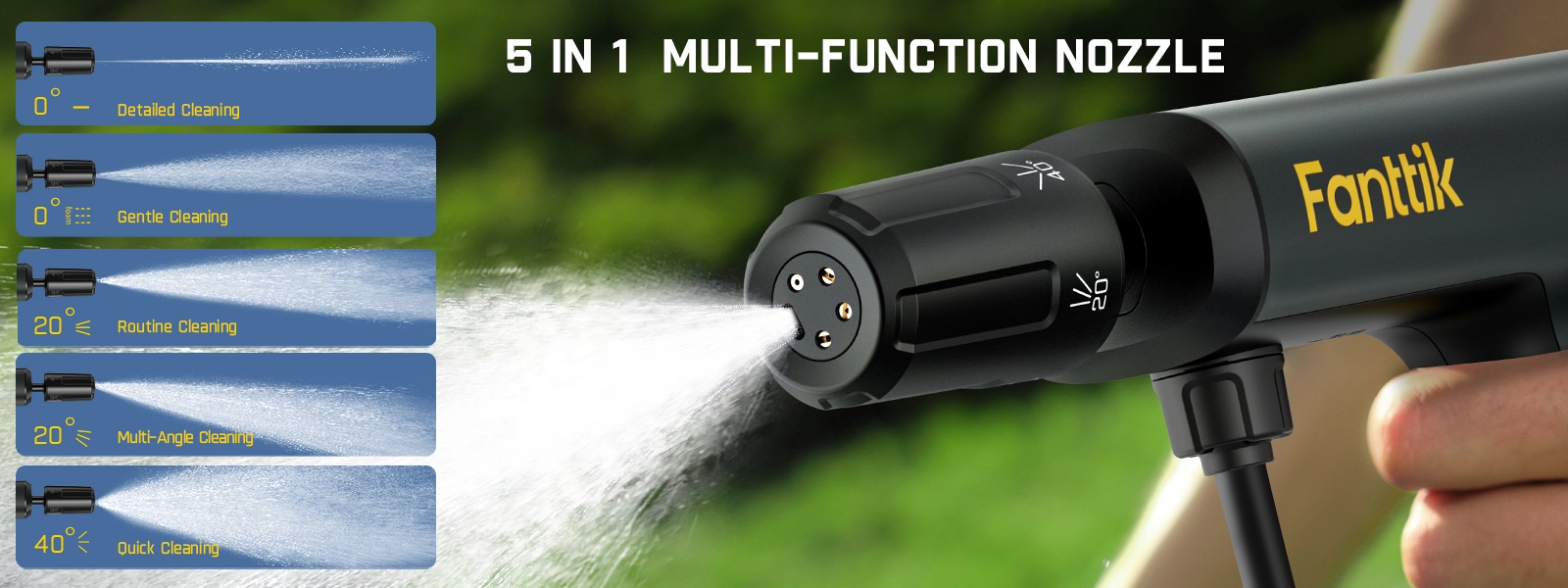 - 5-in-1 Nozzle: Provides versatile cleaning options with adjustable spray patterns to suit different tasks.