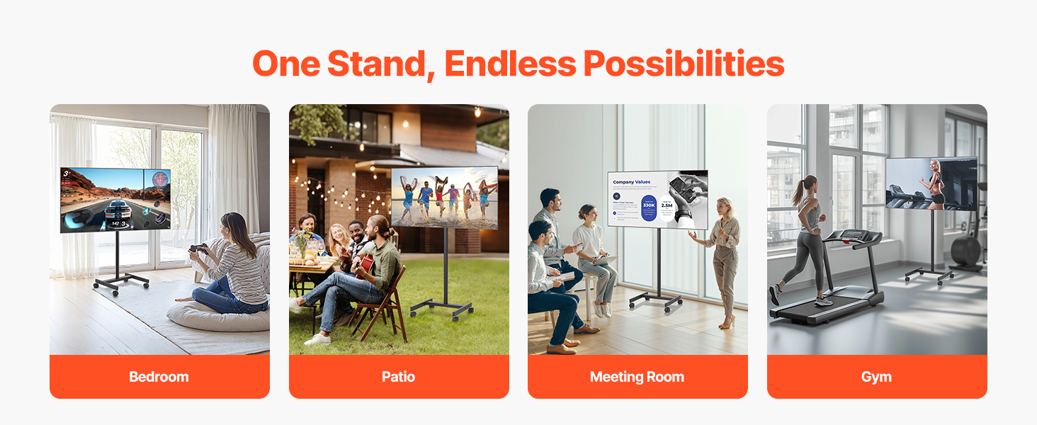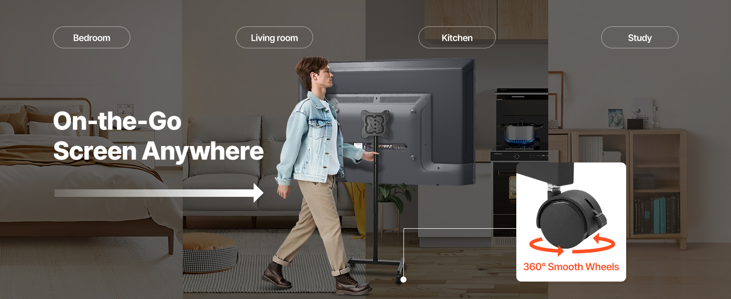 Il nostro supporto TV mobile è dotato di ruote girevoli, così puoi spostare rapidamente la TV da una stanza all'altra.