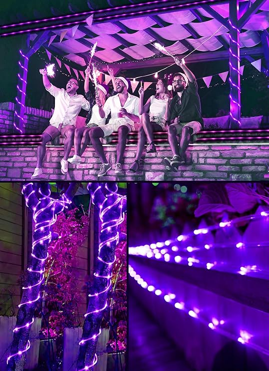 [Outdoor Rope Lights Waterproof] The rope light has thick transparent plastic tube, strong elasticity, anti-UV, energy saving, safe and durable, with good waterproof, protection level IP65, very suitable for long-term indoor or outdoor use (Note: the plug is not waterproof, please keep the plug away from water).