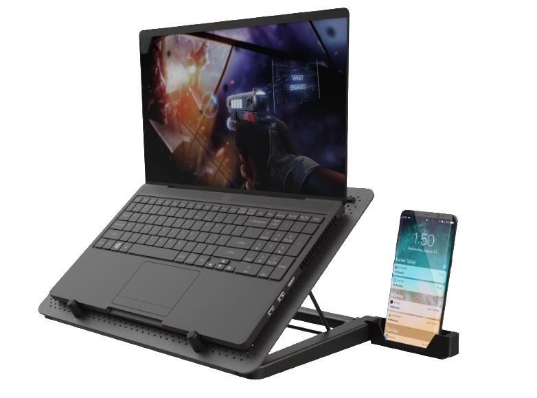 The sturdy aluminium design of the stand fits every laptop up to 17.3. Even the biggest ones will stay cool, thanks to the stands 5 fans. Keeping your laptop coo