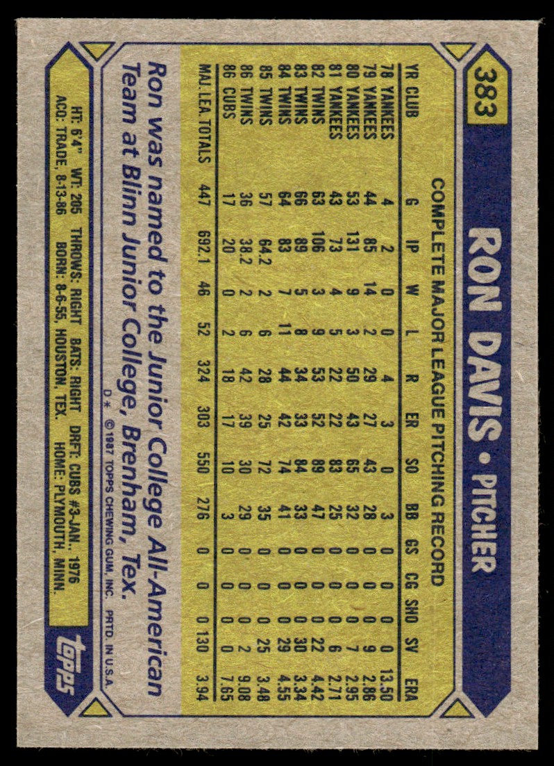 | 1987 Topps Ron Davis Chicago Cubs #383 |