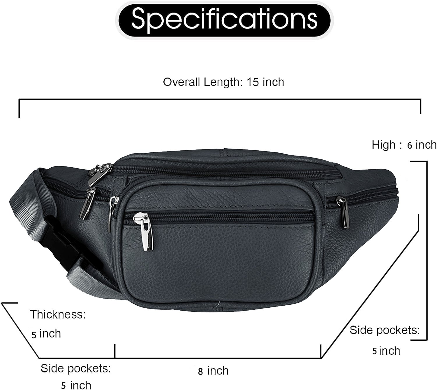 - SIZE & CONSTRUCTION: X-SMALL 10"*4.5". Fits 34-52 inch Waist. 7" Zipper to main compartment. 2 front zippered pockets.