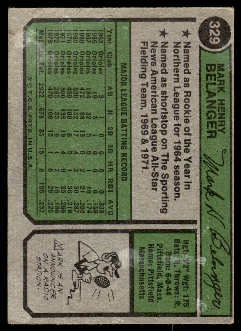 | 1974 Topps **C** Mark Belanger Baltimore Orioles #329 |