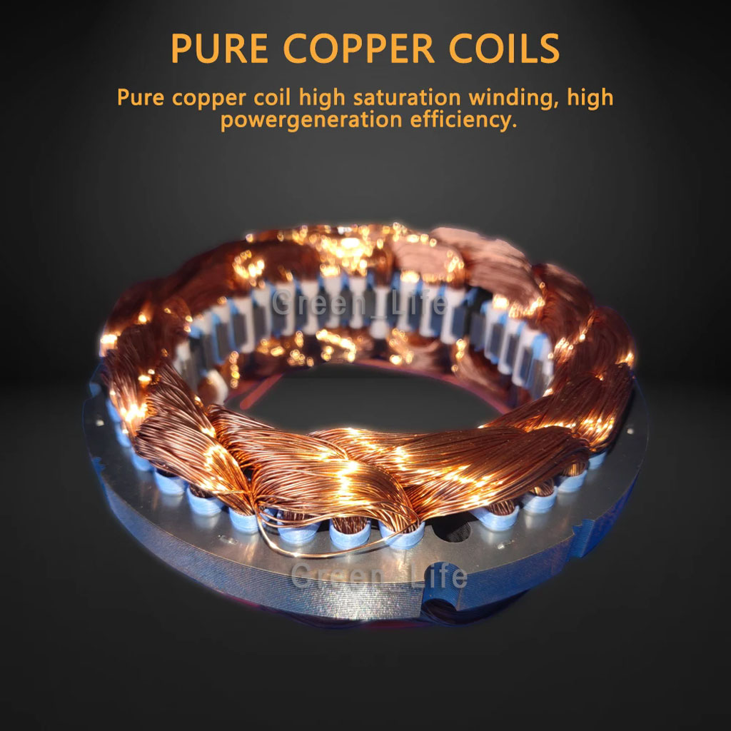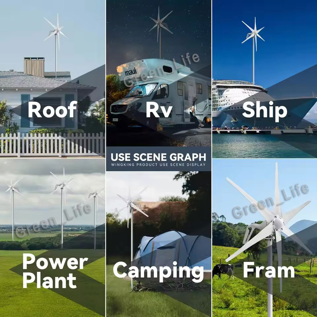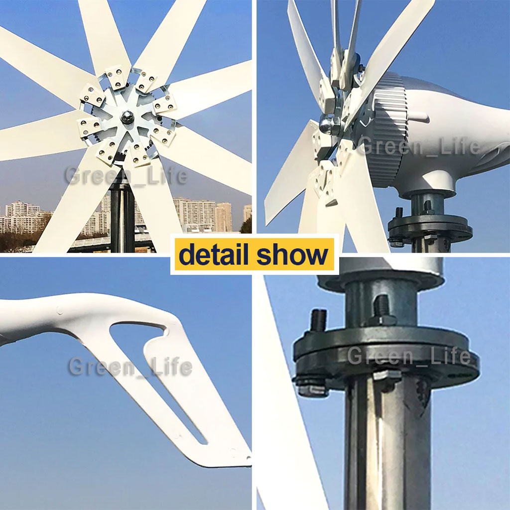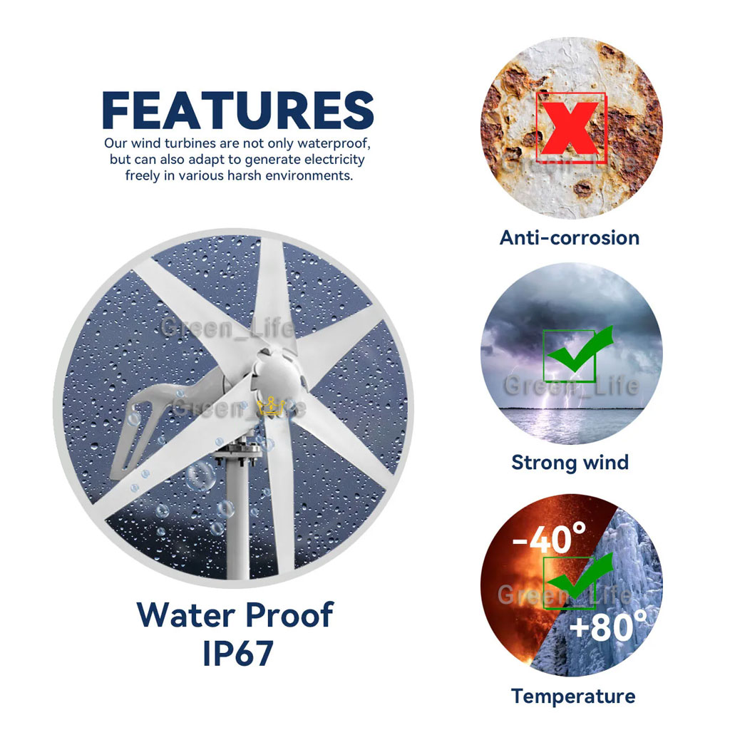【High Efficiency】Controlled by MPPT intelligent microprocessor, it can effectively regulate the current and voltage(12V/24V/48V for optional), and has a high utilization rate of wind energy, which contributes to the annual power generation.