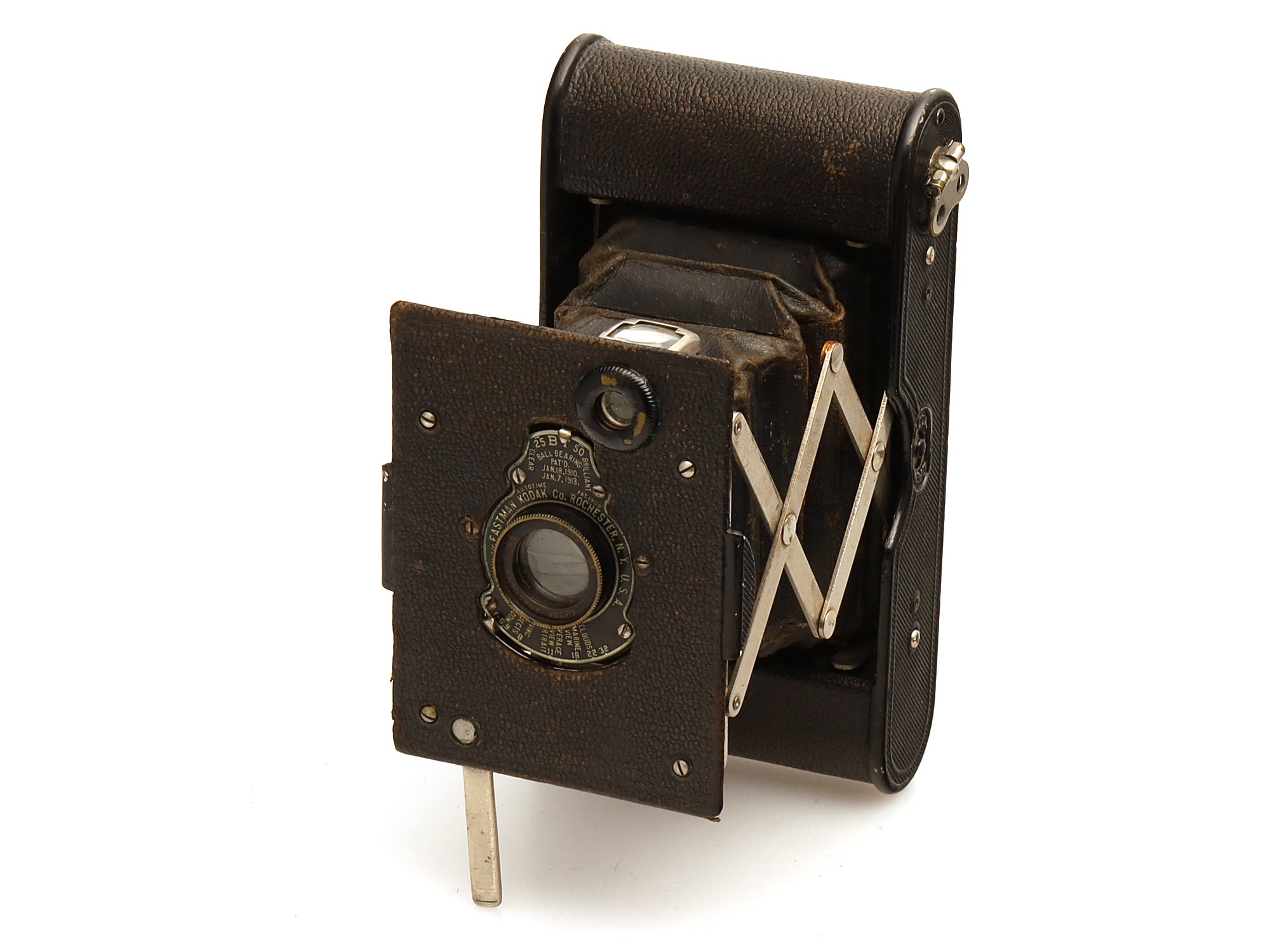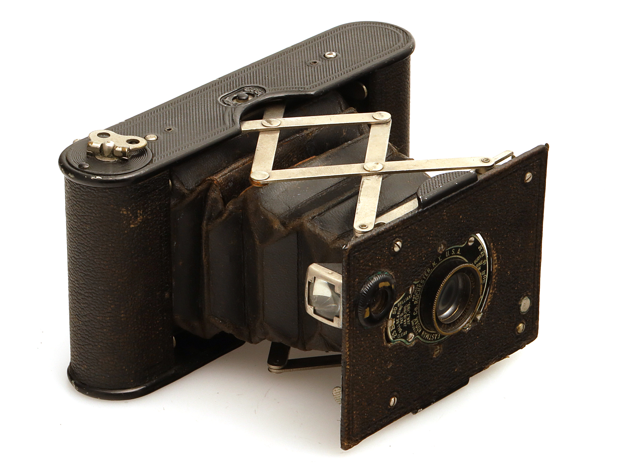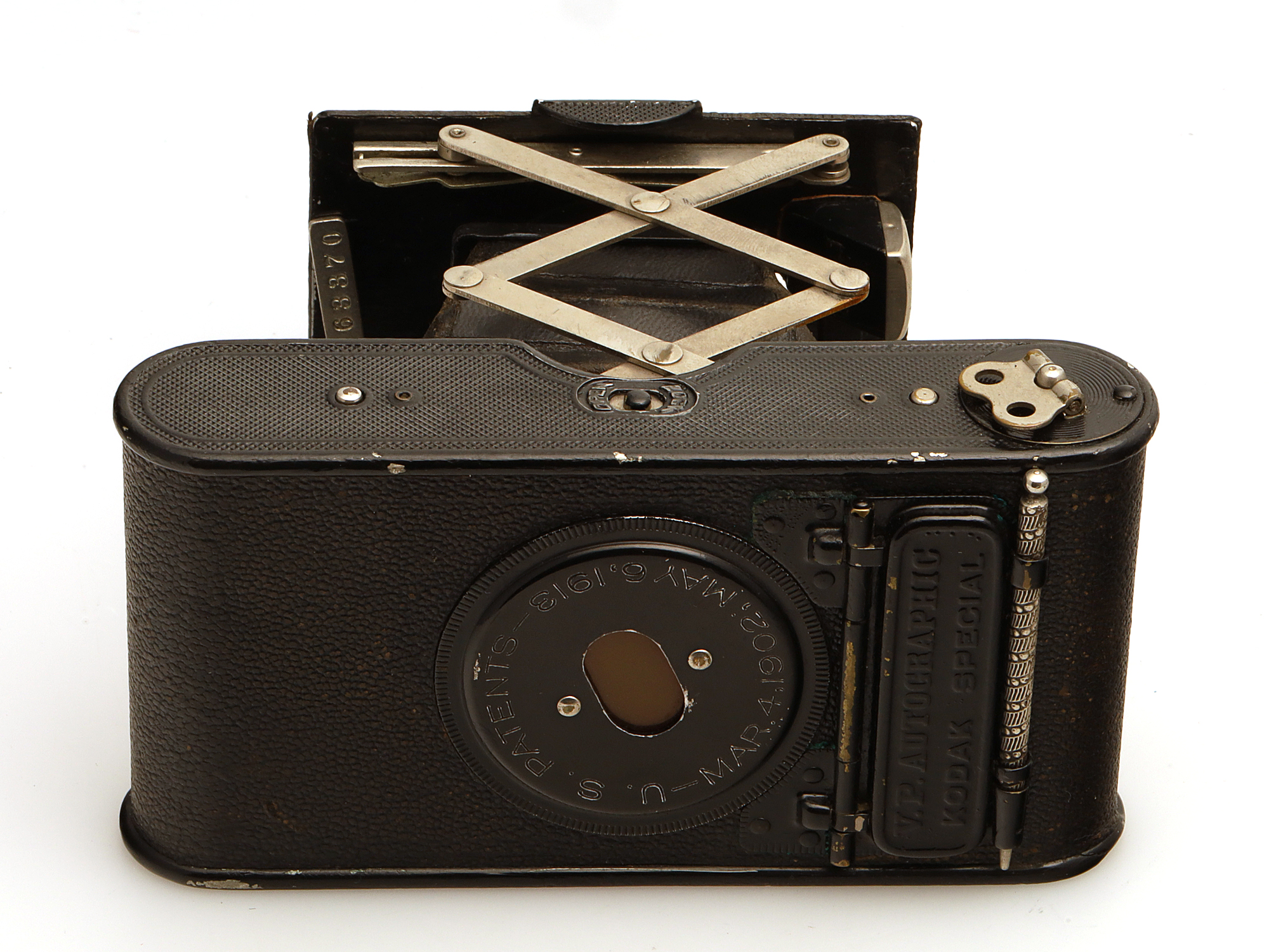Die Kamera hat sichtbare Gebrauchsspuren am Gehäuse.