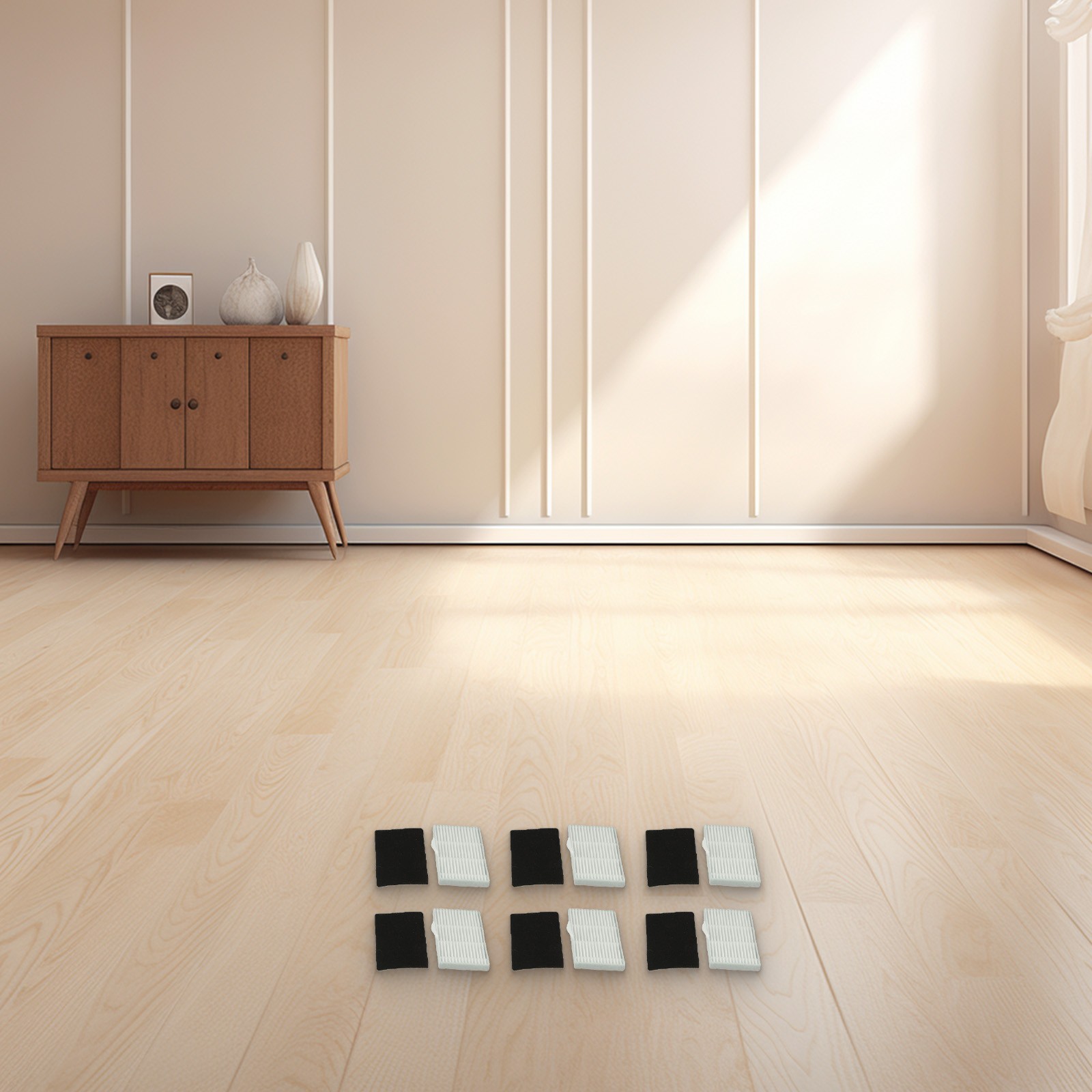 E : 1 * brosse à rouleau + 6 * filtres + 6 * chiffons de serpillière + 6 * brosses latérales
