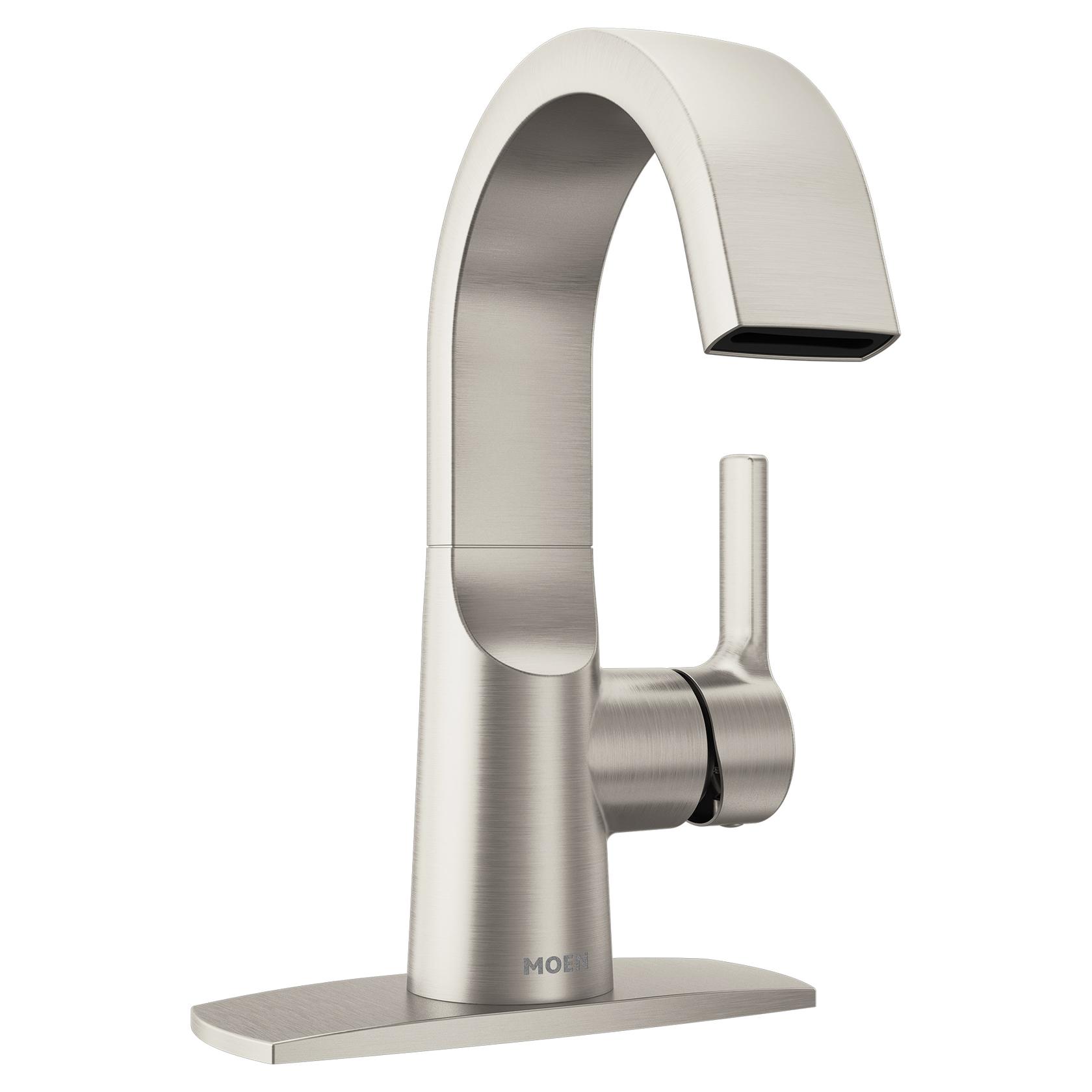 The flowing arcs and smooth edges of Avri bring a soft, luxe, modern design to any bathroom. Avri faucets feature a uniquely delicate, flat ribbon water flow to enhance the collections aesthetic. The faucets come with a push-down drain assembly for quick installation. They come in Moens exclusive Spot Resist Brushed Nickel, which resists fingerprints and water spots to maintain the brilliance of the fixtures. In addition, an array of matching accessories are available to create a cohesive, tailored look throughout the space.