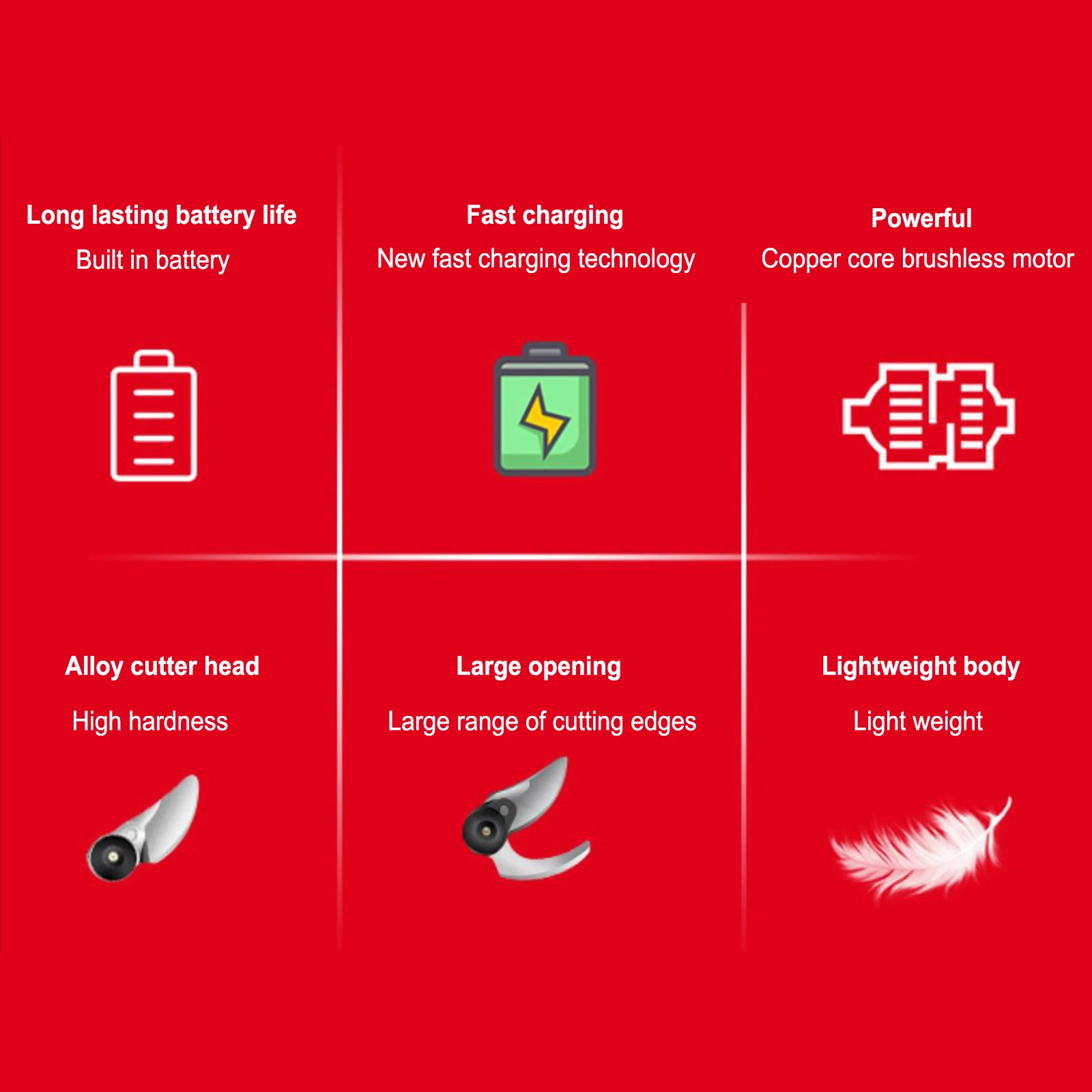 1. This mini electric pruning shears, fast shearing speed, easy to use, small size, cordless design, easy to carry, improve efficiency.