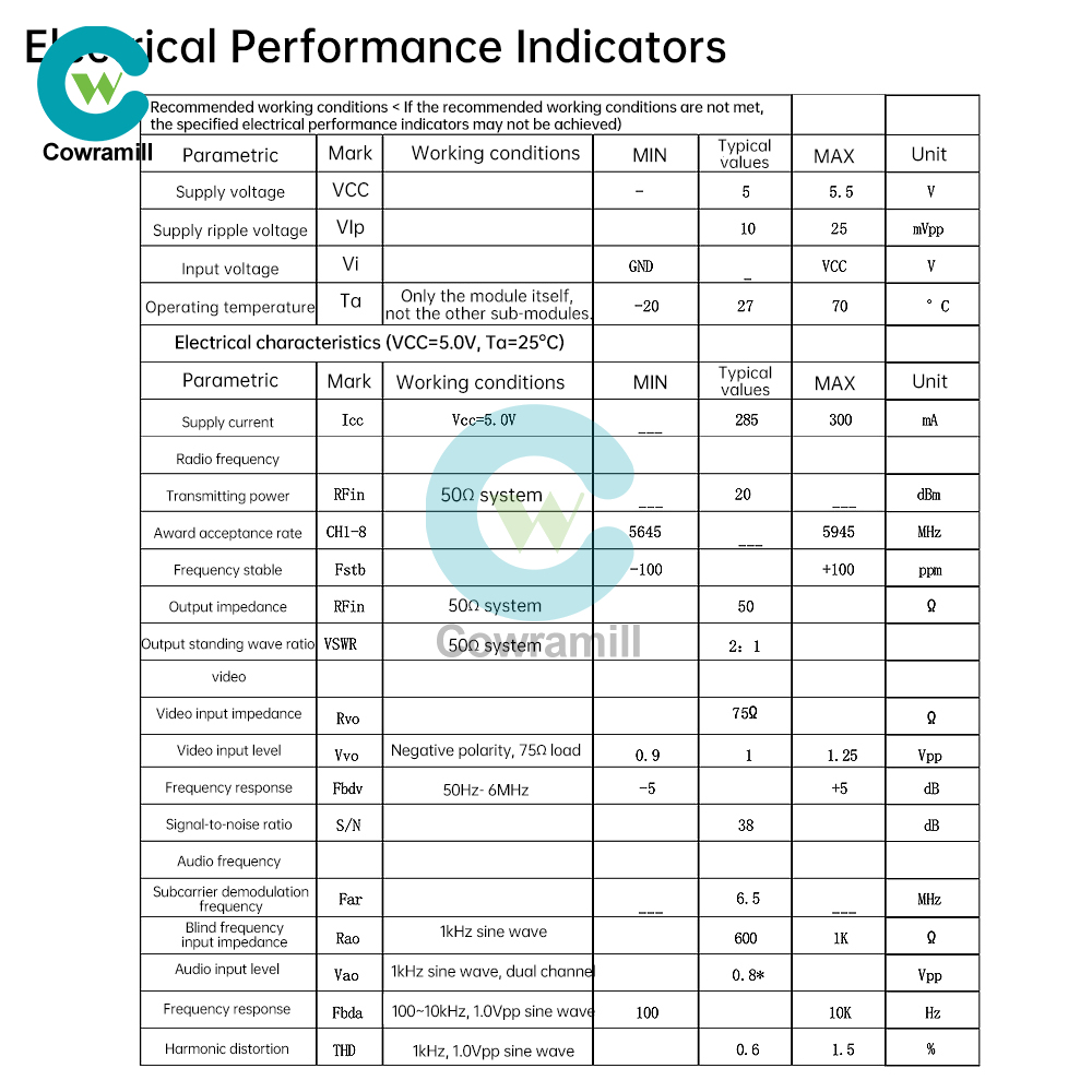 2. High frequency band transmission: working in 5645-5945MHz ISM band, support FM audio and video synchronous transmission, clear and stable signal.
