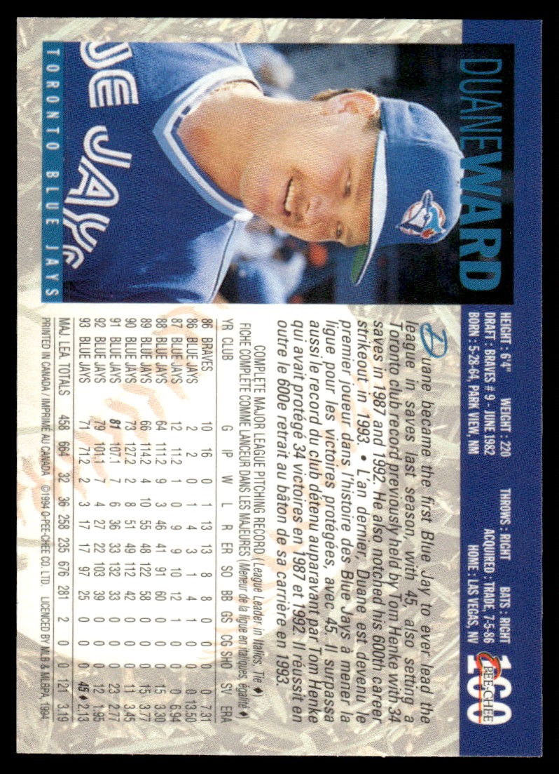 | 1994 O-Pee-Chee Duane Ward Toronto Blue Jays #160 |