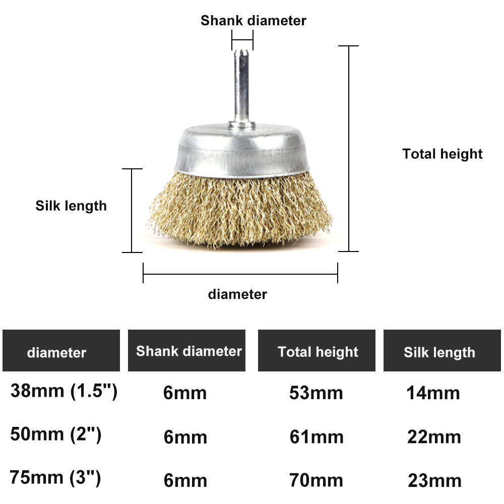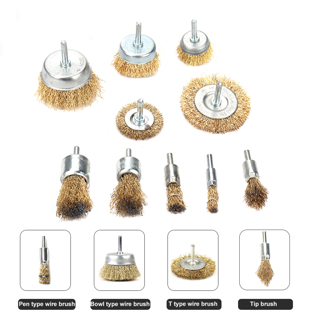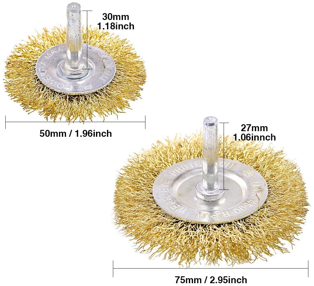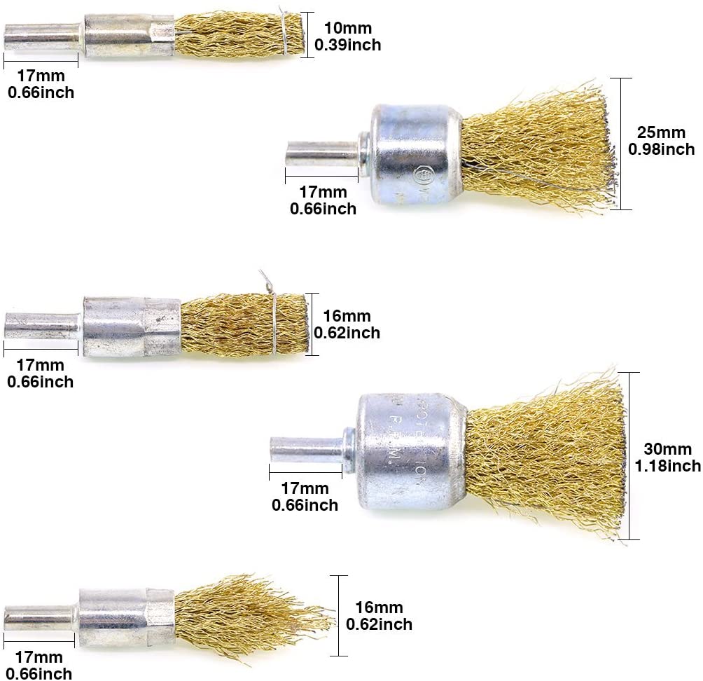 6-Piece Brass Coated Wire Brush Wheel & Cup Brush Set.