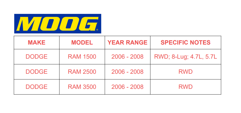 MOOG Front Wheel Bearing Hub For 06-08 Ram 1500 2500 3500 Pickup 515114