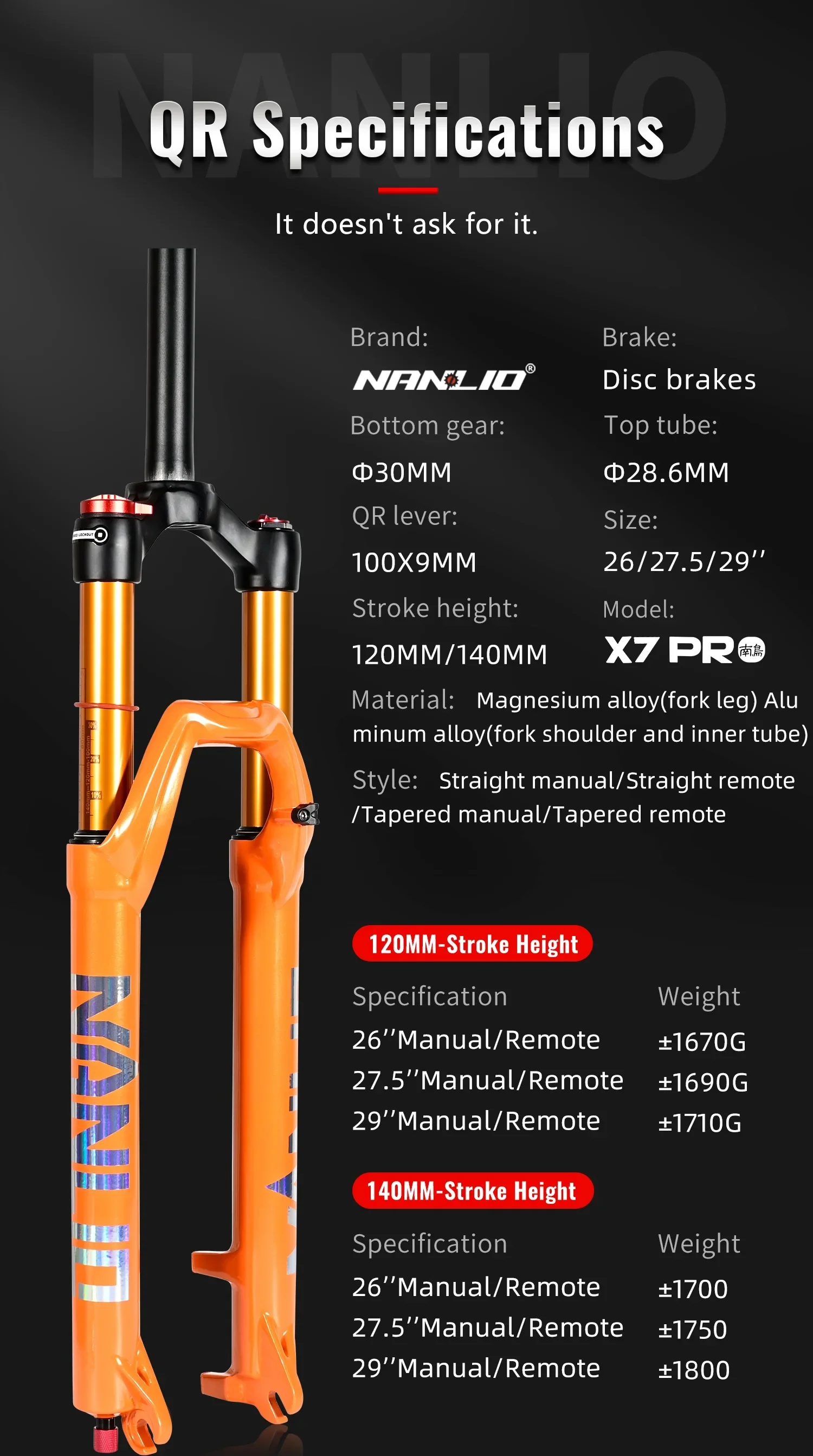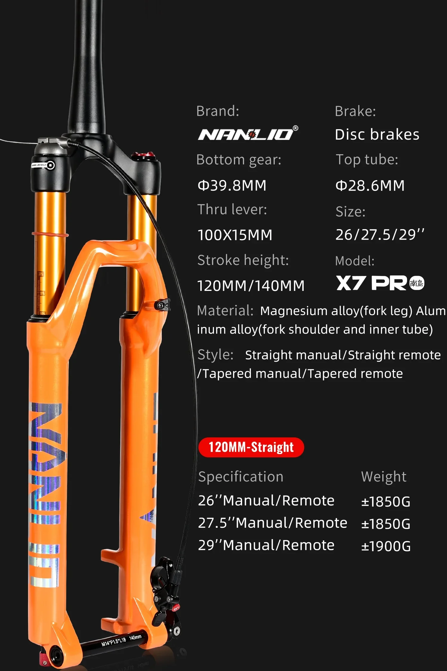 Name:X7 PRO AIR SUSPENSION FORK