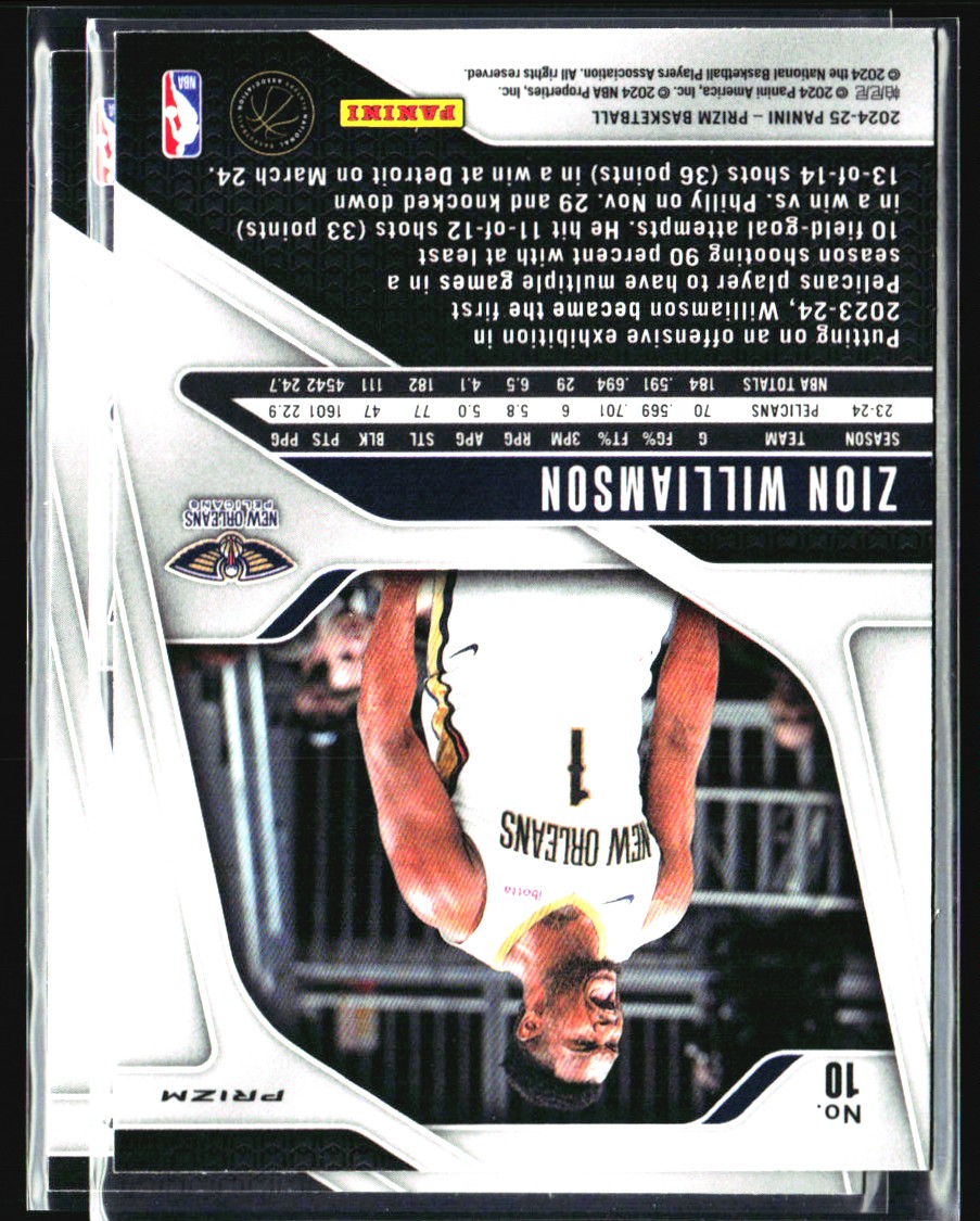 2024-25 Panini Prizm Silver Zion Williamson New Orleans Pelicans #10