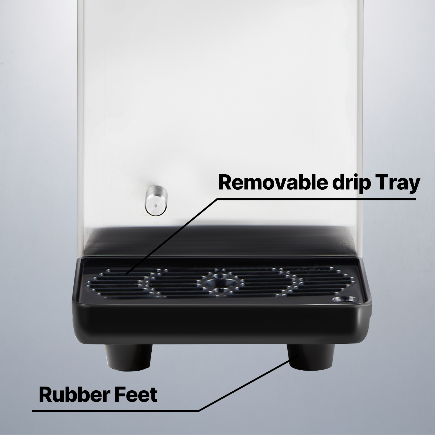 - Caratteristiche aggiuntive:il rubinetto a molla garantisce una perdita d'acqua minima dopo l'uso. Il design della ventilazione su tre lati assicura una rapida dissipazione del calore e i piedini in gomma assicurano una posizione antiscivolo