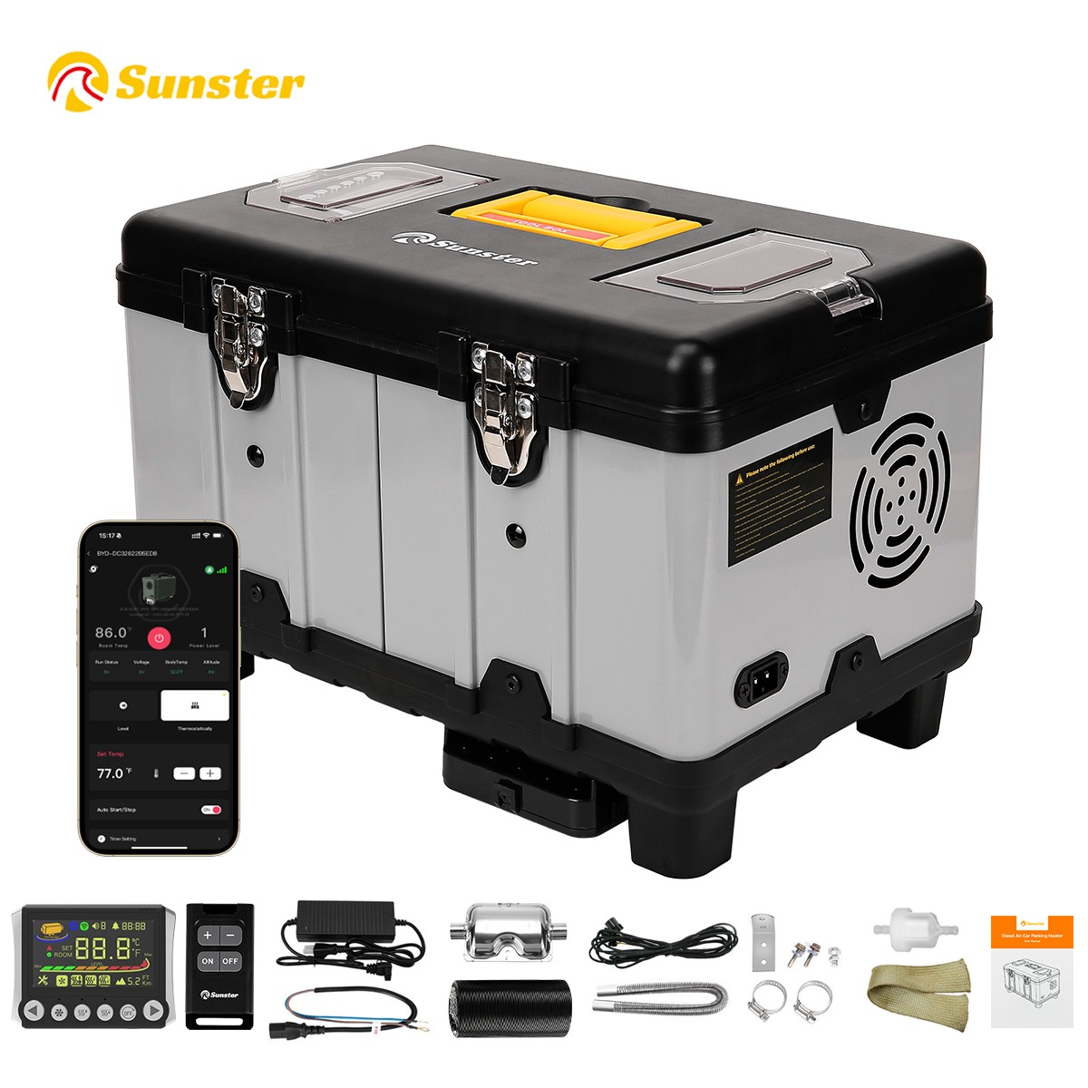 Universeller Dual-Stromeingang (12 V/24 V DC und 110 V–240 V AC): Die kompakte Sunster-Dieselheizung schaltet automatisch zwischen Fahrzeug- und Haushaltsstrom um, sodass Sie sie sowohl unterwegs als auch zu Hause verwenden können. Perfekt für alle, die vielseitige Heizlösungen für verschiedene Umgebungen suchen.