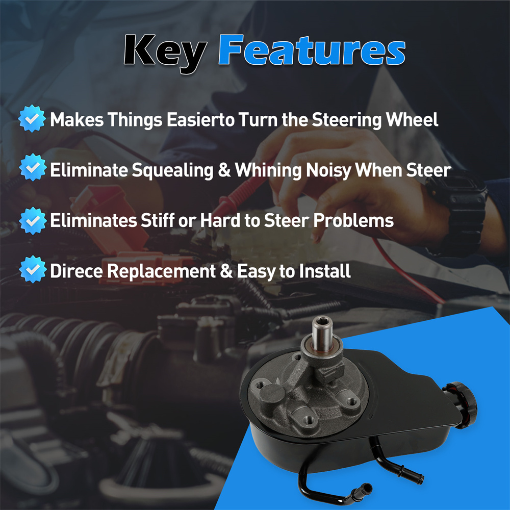If you have symptoms like whining noise while turning the wheel, steering wheel slow to respond, stiff steering wheel, or squealing & groaning noises when the vehicle starts, and you might need to replace your old Power Steering Pump with this one.