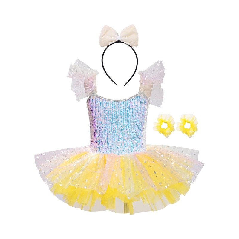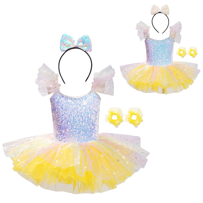 Girl’s tutu dress makes your child the spotlight of any party. Complete the look with a bowknot hairband and two tulle wristbands.