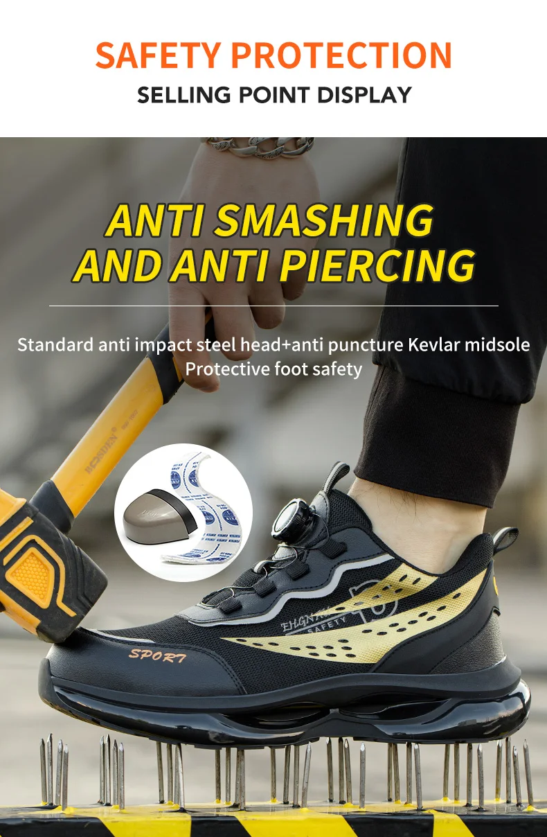 ✔️ Puncture-Proof Sole – 5mm-thick anti-penetration midsole shields against nails, glass, and sharp debris.