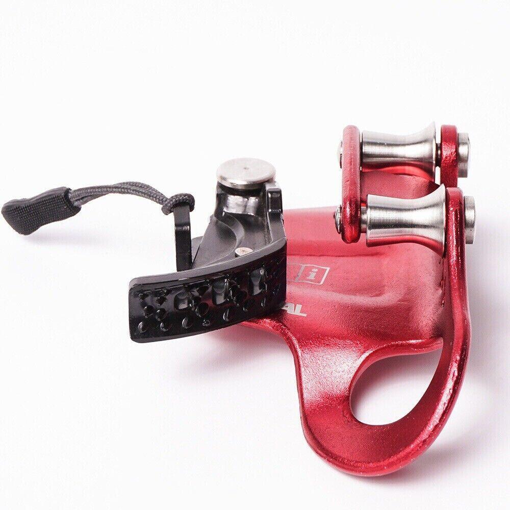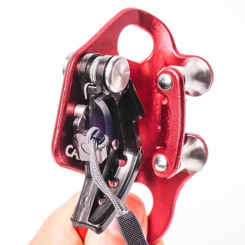 References: Material: 7075 aviation aluminum Dimension: 9.2cm × 5.8cm Color(s): red Weight: 109g Rope compatibility: 8-13mm Max. load: 120KG Description: Professiomal, help increase climbing efficiency and decrease wear and tear on the device and ropes. Super smooth action and increased safety on traversing maneuvers. Thicker body plates and a shaped connection point reduce shifting between the device and the connector. Can be rigged as a locking pulley for light hauling.