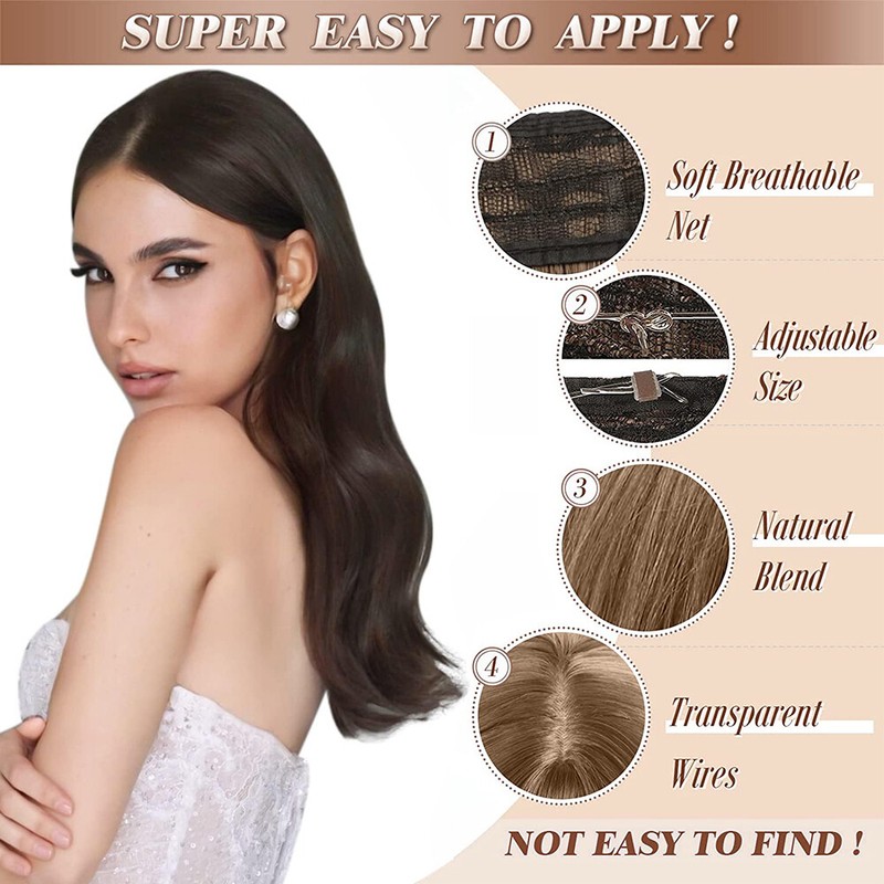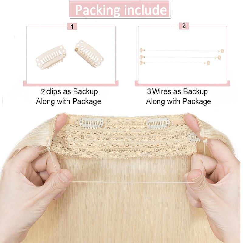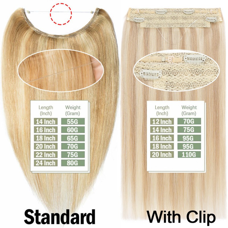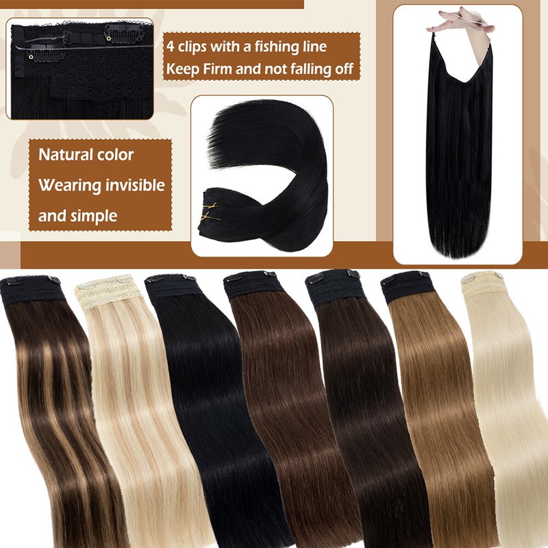 【Real Human Hair】100% remy human hair. The remy hair can remain ultra-soft, shiny, silky straight, soft, and tangle-free. No tape or chemicals to injure your hair, with hidden transparent wire, can blend perfectly with your hair color. Fish wire hair extensions real human hair can be washed, strengthened, curled, dyed, permed etc.