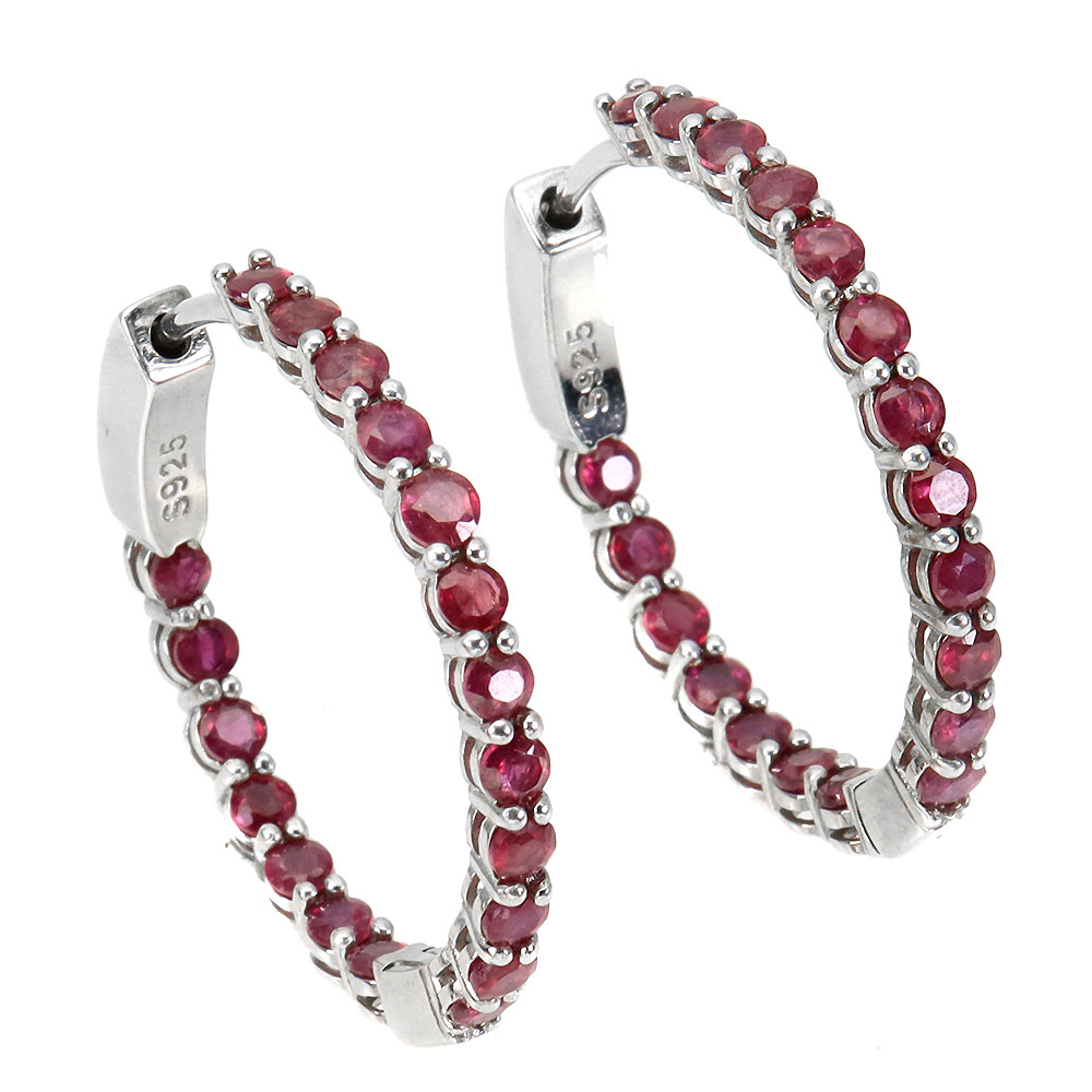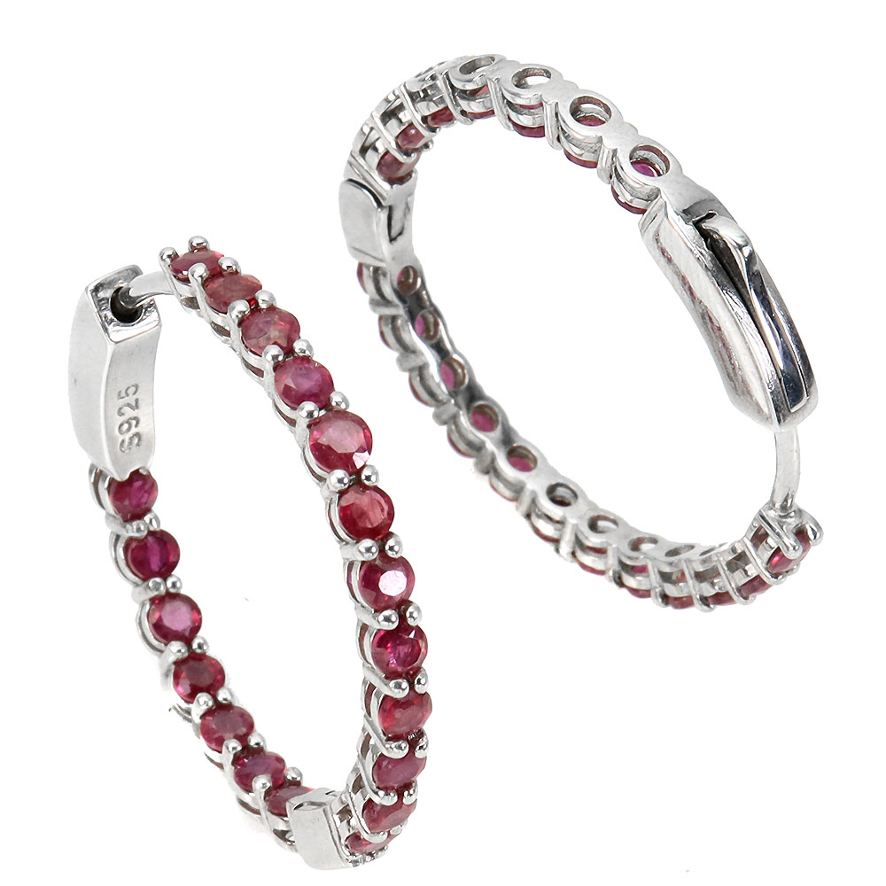Heated Round Red Ruby 2.5mm White Gold Plate 925 Sterling Silver Earrings