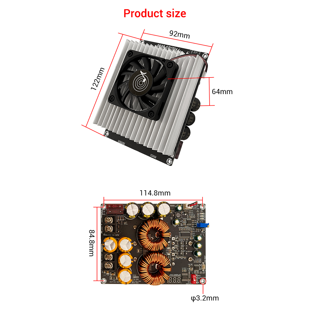 Heat dissipation: 60mm * 60mm fan air-cooled, increase the thickened 100 * 92 * 20mm heat sinks