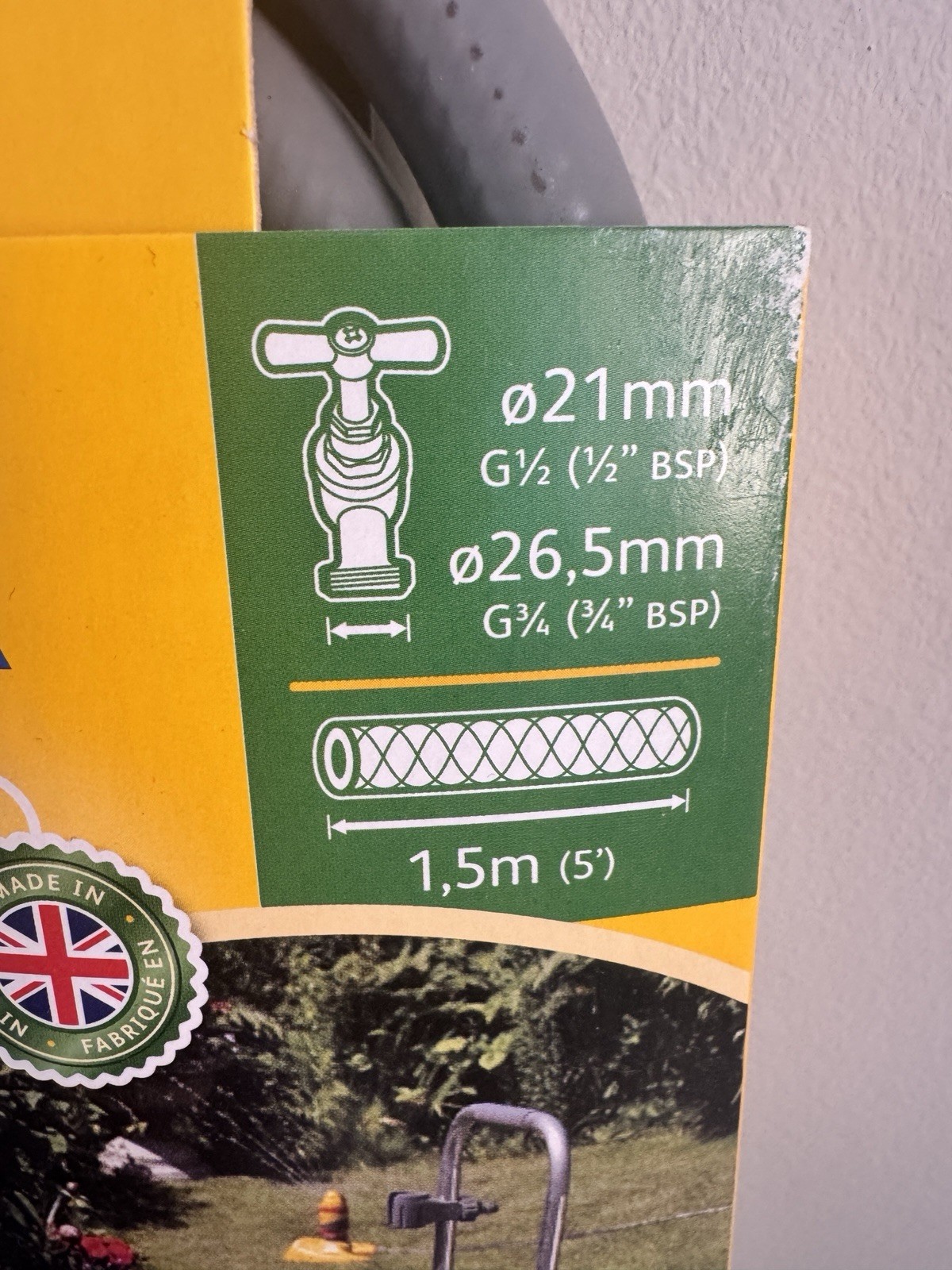 HOZELOCK - Universal Connection Kit ø 13 mm (1/2") 1.5 m : Connection Adapter for Reel - Cart, Supplied with 1 Tap Connector Ø 21mm - 26.5mm [6005R0000], Grey, Yellow