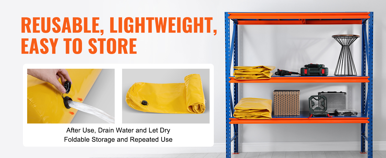 Tragbar & einfach zu verstauen: Mit einem Gewicht von nur 8,8 lbs / 4 kg sind die Hochwasserbarrieren für zu Hause leicht und tragbar und lassen sich ordentlich in Lagerschränken zusammenfalten, ohne Platz zu beanspruchen. Stellen Sie vor der Lagerung sicher, dass sie gründlich getrocknet sind. Halten Sie sie während der Verwendung von scharfen Gegenständen fern und lagern Sie sie an einem kühlen, trockenen Ort.